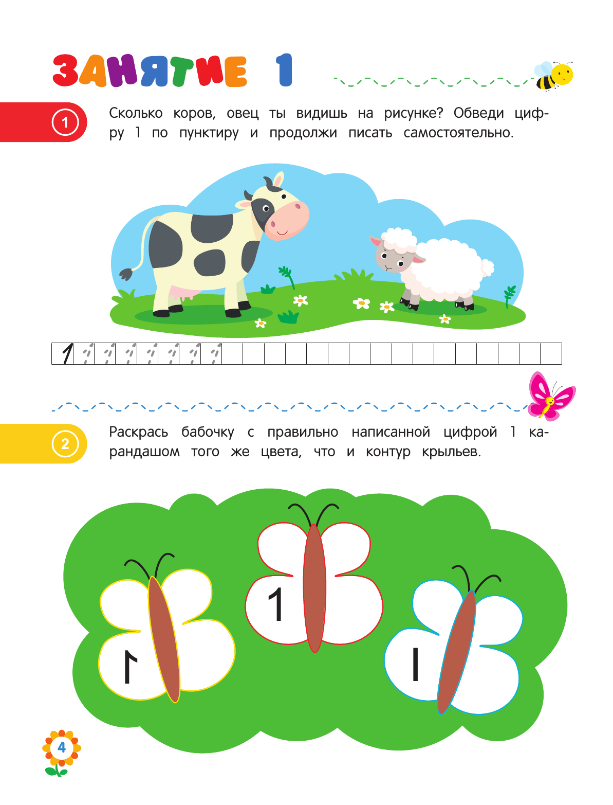 Пособия от данного автора нам посоветовали в Детском садике для самостоятельных занятий с детьми дома. Данное пособие достаточно объёмное, все странички белые, плотные, иллюстрации цветные на каждой страничке. Задания достаточно простые - где-то посчитать, где-то раскрасить и так далее. Но для ребенка, который только постигает азы счета будет нелегко, но за счет интересных заданий процесс обучения будет достаточно беспроблемным и быстрым.