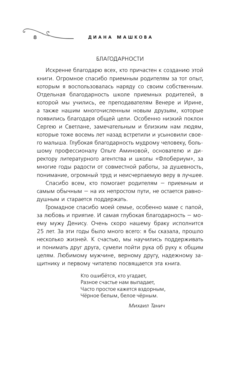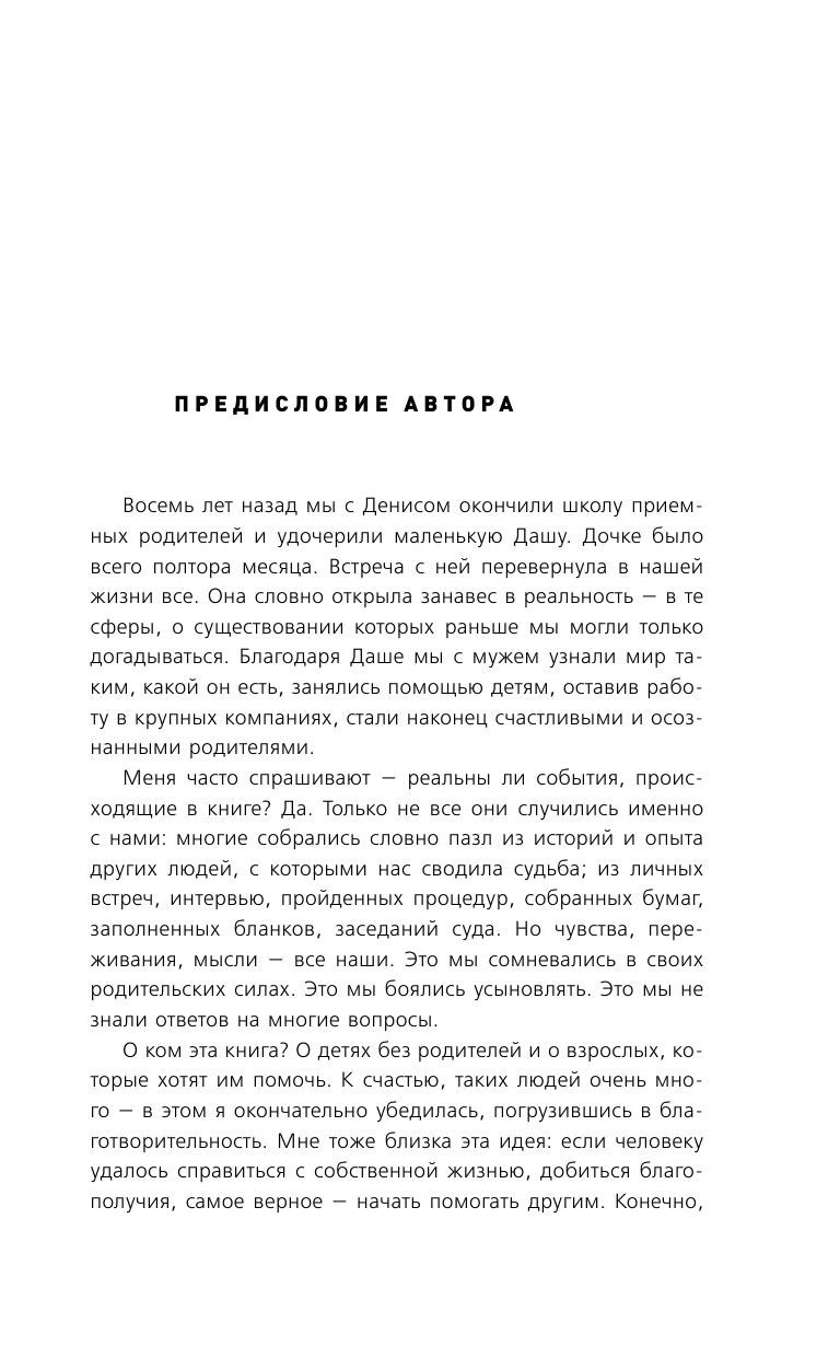 Эту книга вошла в список рекомендаций для прочтения в Школе приемных родителей. Пока читала испытала весь спектр человеческих эмоций: плакала навзрыд, смеялась от души, негодовала от возмущения и снова плакала. Роман зацепил меня за живое. Удивительное переплетение историй и судеб, и конечно же, такой необходимый хеппи энд. Спасибо автору за книгу. Теперь я не сомневаюсь в своем решении.