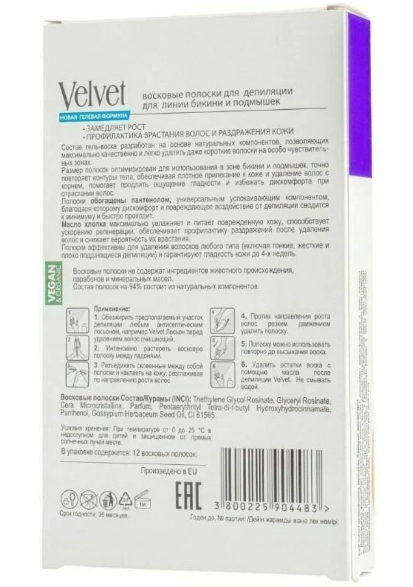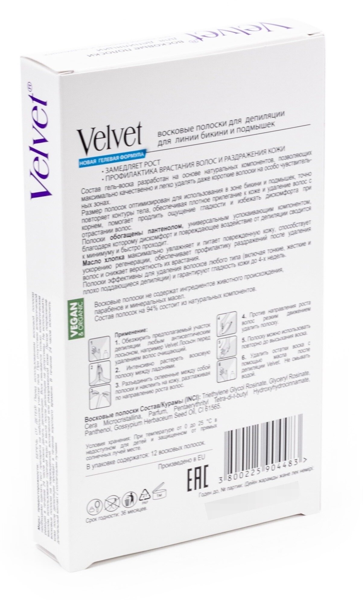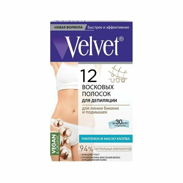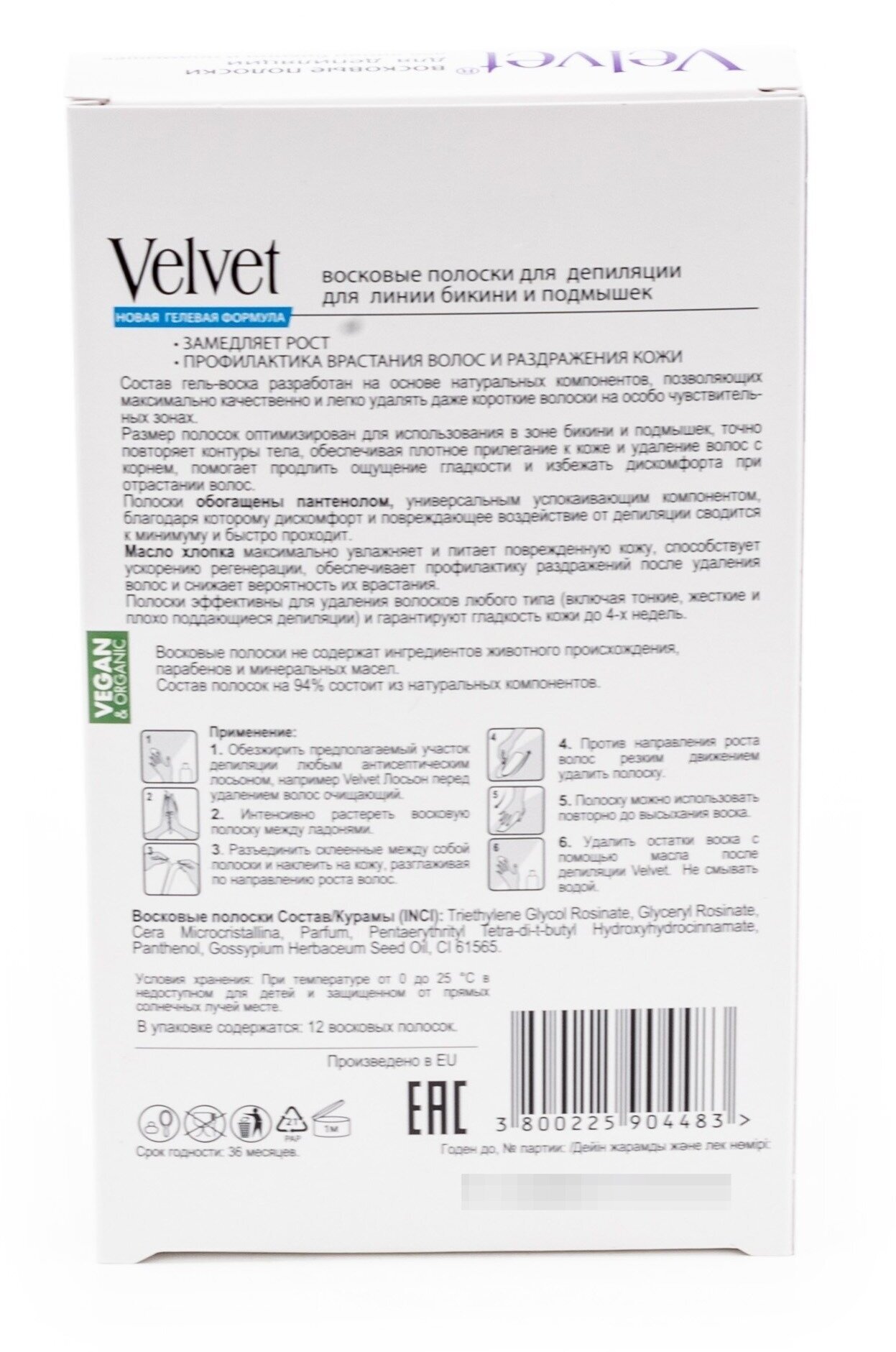 Полоски для депиляции Velvet восковые для линии бикини и подмышек 12шт