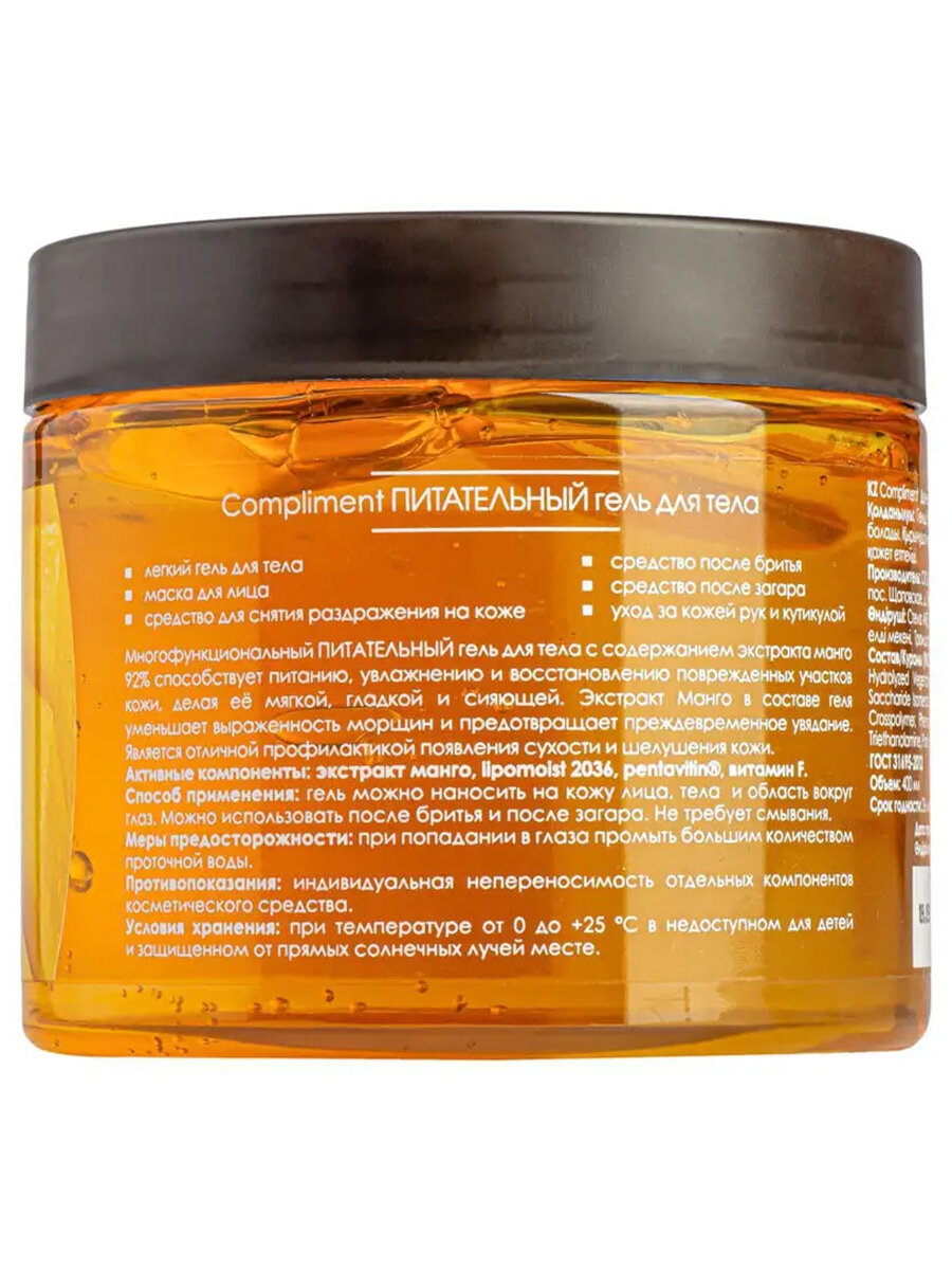 | Полное наименование | Питательный гель для тела Compliment "Манго", 400 мл |