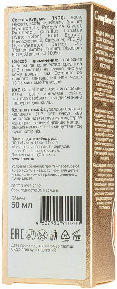 На сегодняшний день товар «Жидкие патчи для кожи вокруг глаз Compliment с экстрактом арбуза и гиалуроновой кислотой 50мл» можно купить с кешбеком в 1 магазине: Яндекс.Маркет