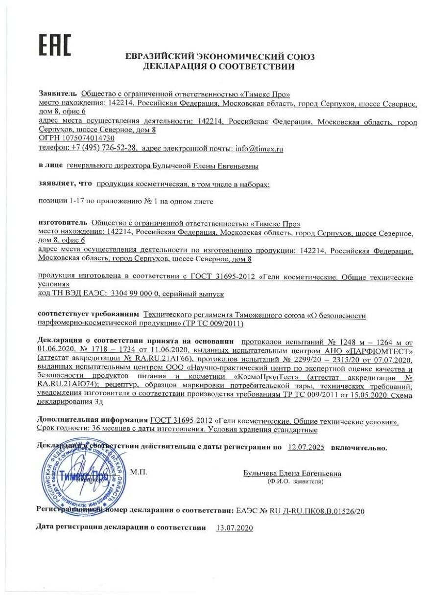 | Класс косметики | масс-маркет |
