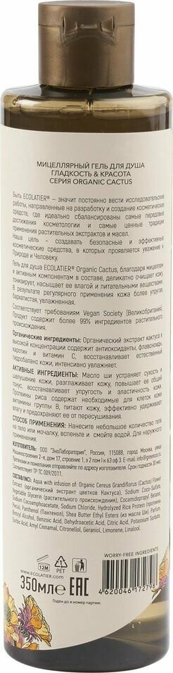 Гель для душа Ecolatier Organic Cactus Гладкость & Красота Мицеллярный 350мл