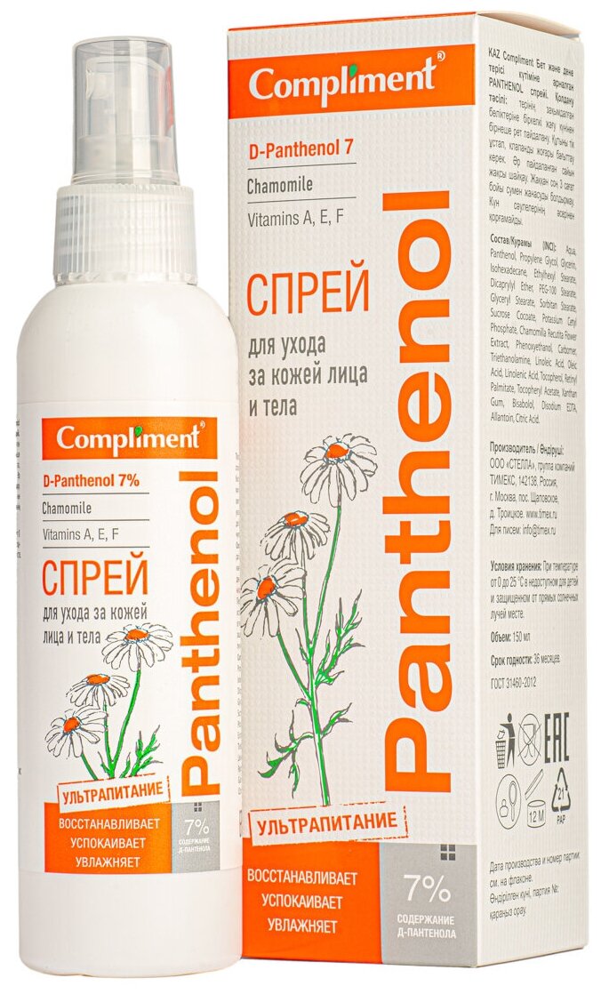 Сервис сравнения цен СкидкаГИД предлагает сравнить цены на товар «Спрей для лица и тела Compliment Panthenol 150мл»