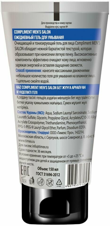 Сервис сравнения цен СкидкаГИД предлагает сравнить цены на товар «Гель для умывания Compliment Mens Salon Ежедневный 150мл»