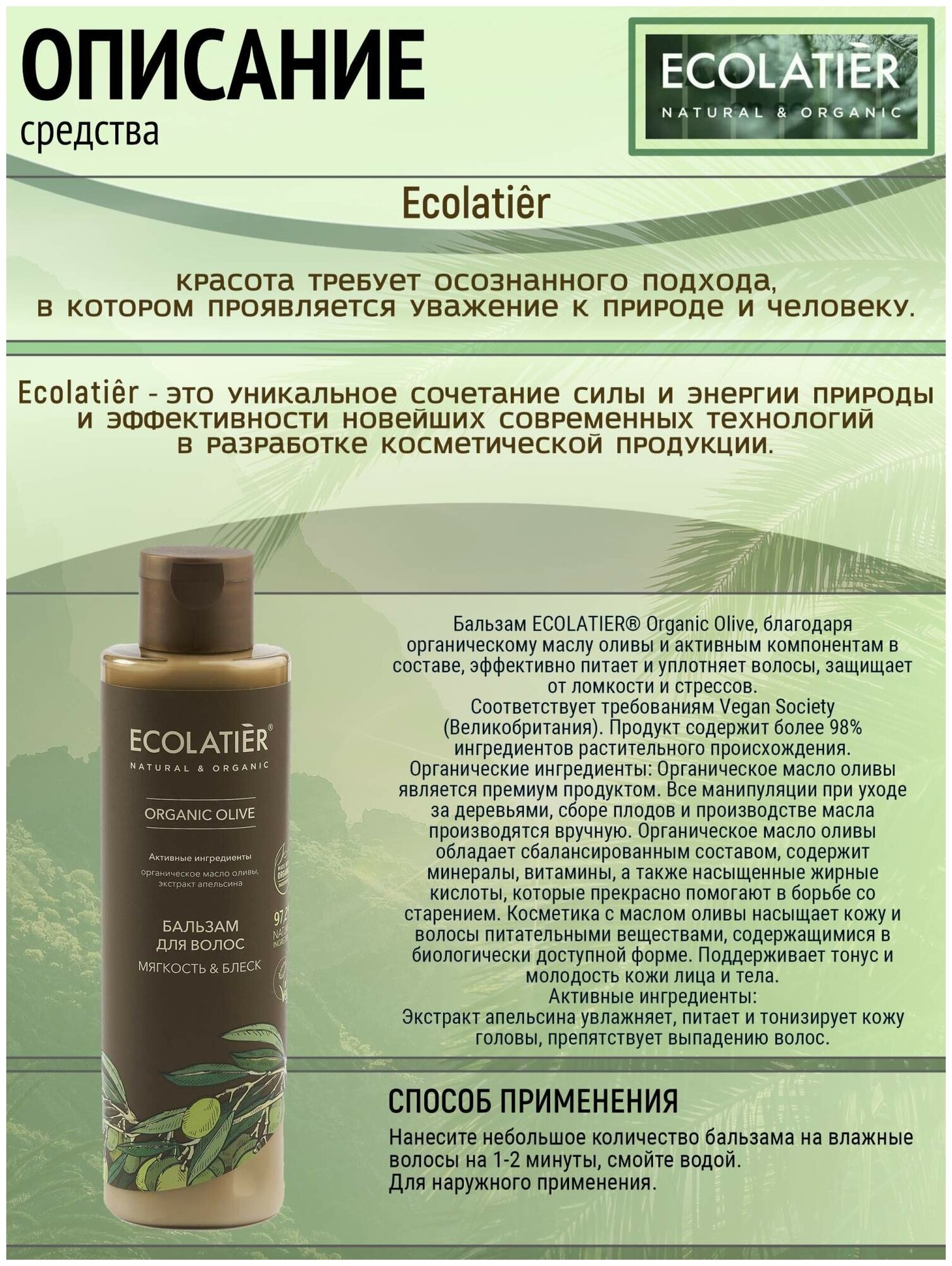 Бальзам для волос Ecolatier Organic Olive Мягкость & Блеск 250мл