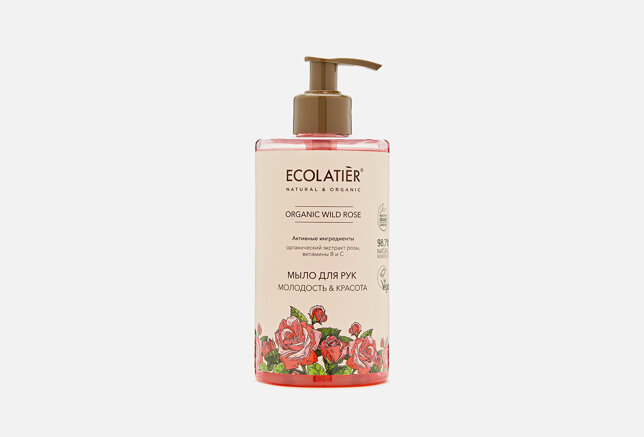 Мыло для рук ECOLATIER Organic Wild Rose с натуральными экстрактами и маслами в составе нежно очищает, смягчает и питает кожу рук, защищает от сухости.