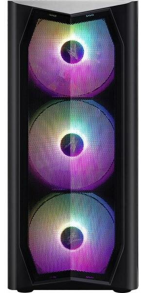 Корпус поддерживает установку до 2 вентиляторов диаметром 120 мм сверху, до 3 вентиляторов диаметром 120 мм, 3 вентиляторов диаметром 140 мм или 2 вентиляторов диаметром 180 мм спереди, до 2 вентиляторов диаметром 120 мм снизу и 1 вентилятор диаметром 120 мм сзади. В комплекте с корпусом идут вентиляторы, поддерживающие RGB-подсветку: 2 сверху, 3 спереди и 1 сзади.