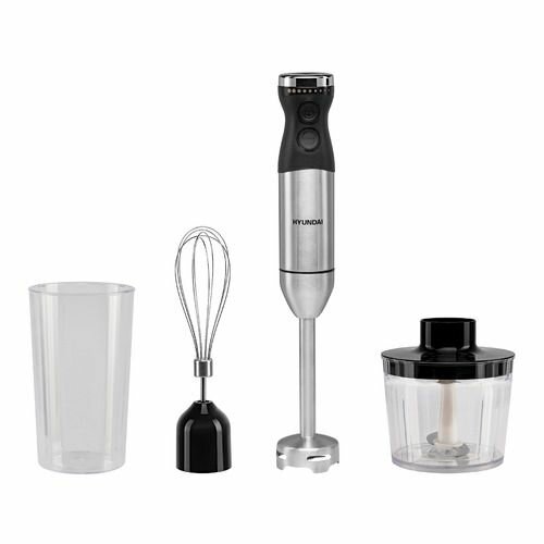 Блендер погружной Hyundai серебристый/черный, мощность 800Вт, материал погружной части нержавеющая сталь