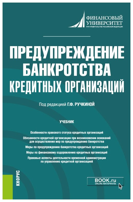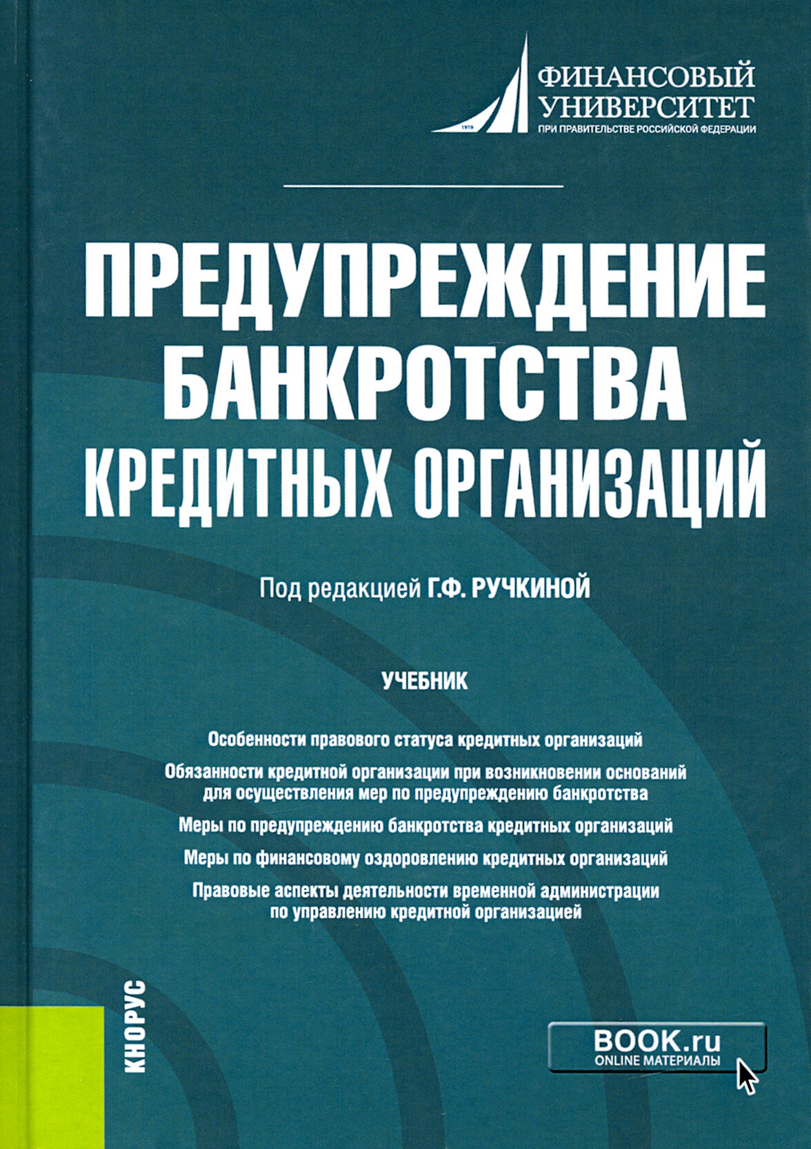 Предупреждение банкротства кредитных организаций. Учебник (Ручкина Гульнара Флюровна, Саблин А. С., Баранов О. О.); Кнорус, 2022