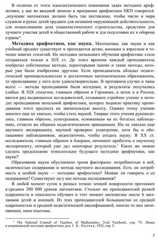 Эта книга заключает в себе сравнительно небольшую по объему общую часть и обширную специальную часть — методику преподавания арифметики в начальной школе по годам обучения. Обе эти части составляют единое целое: основные принципиальные установки, данные в начале книги, раскрываются и конкретизируются в последующих главах. Поэтому, желая успешно преподавать арифметику в одном из классов начальной школы, учитель должен ознакомиться со всеми разделами книги. Вопрос о задачах не затрагивается в общей части — он изложен в специальной части по годам обучения. Тем более важно, чтобы учитель ознакомился не с одной какой-нибудь частностью в развитии этого вопроса, но со всем материалом в целом. Настоящая книга предназначается для учителей начальной школы и для учащихся педагогических вузов и колледжей.