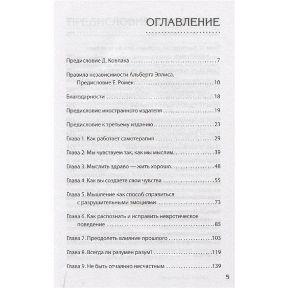 Книга дает вам теоретический материал и показывают теория РЭПТ на настоящих историях людей и покажет связь между чувством и мыслью. В конце книги - практическая часть с таблицами по рациональным и иррациональным убеждениям.