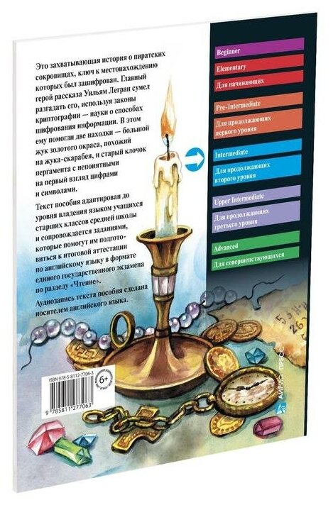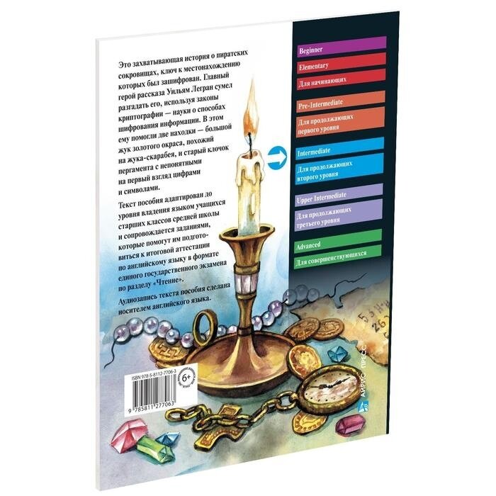 Книга представляет собой адаптацию приключенческого рассказа знаменитого американского писателя, классика «страшной» и детективной новеллы Эдгара По (1809 — 1849) «Золотой жук». Это захватывающая история о пиратских сокровищах, ключ к местонахождению которых был зашифрован. Главный герой рассказа Уильям Легран сумел разгадать его, используя законы криптографии — науки о способах шифрования информации. В этом ему помогли две находки — большой жук золотого окраса, похожий на жука-скарабея, и старый клочок пергамента с непонятными на первый взгляд цифрами и символами.