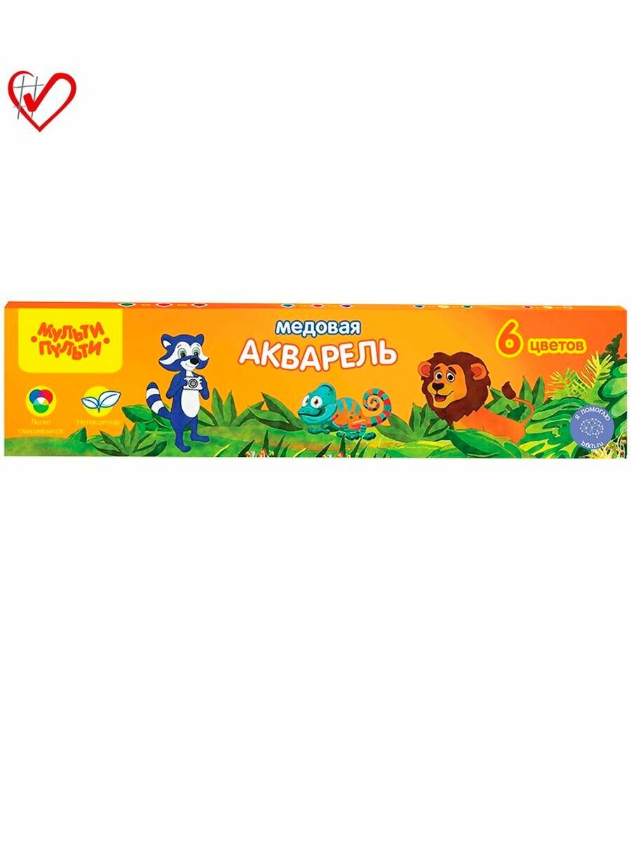 Краски акварельные Мульти-Пульти Енот в джунглях медовые 6 цветов