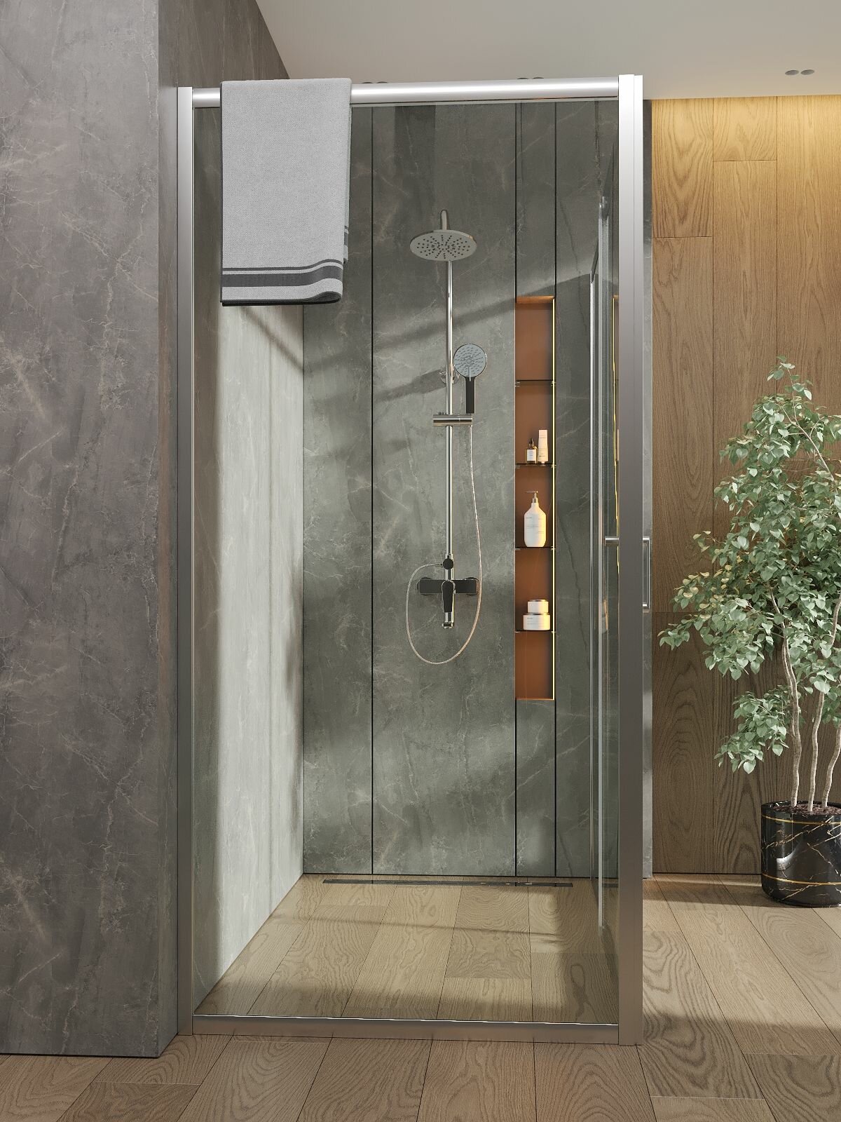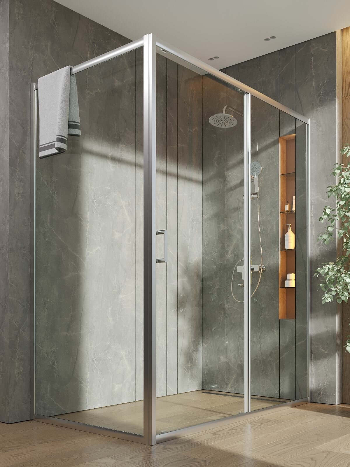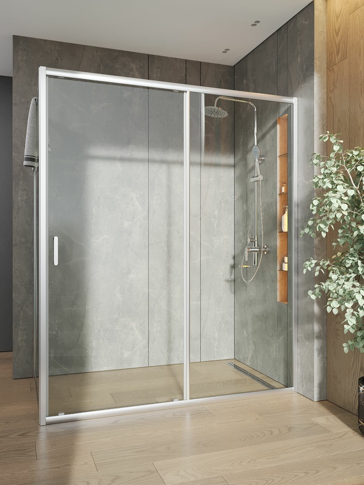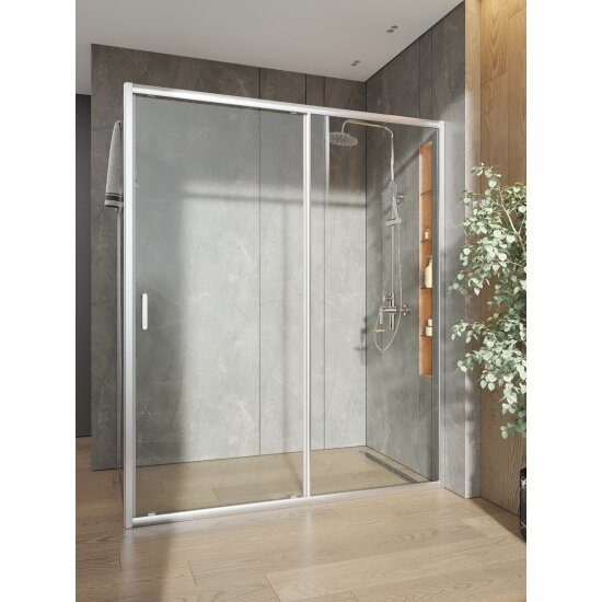 Душевой уголок с раздвижной дверкой поможет организовать душевую зону в нише ванной комнаты, монтаж напольный без поддона. Модель сочетает в себе современный минималистичный дизайн с удобством и функциональностью - универсальная конструкция, возможен право- и левосторонний монтаж. Прозрачное закаленное 6-миллиметровое стекло гармонично дополняет двойной алюминиевый профиль (хром). Боковая стенка - стекло толщиной 5 мм. Благодаря двойным роликам обеспечивается плавное движение створки. Габариты 160,5х88,5х190 см с возможностью регулировки ширины и глубины. Ширина входа - 75 см.