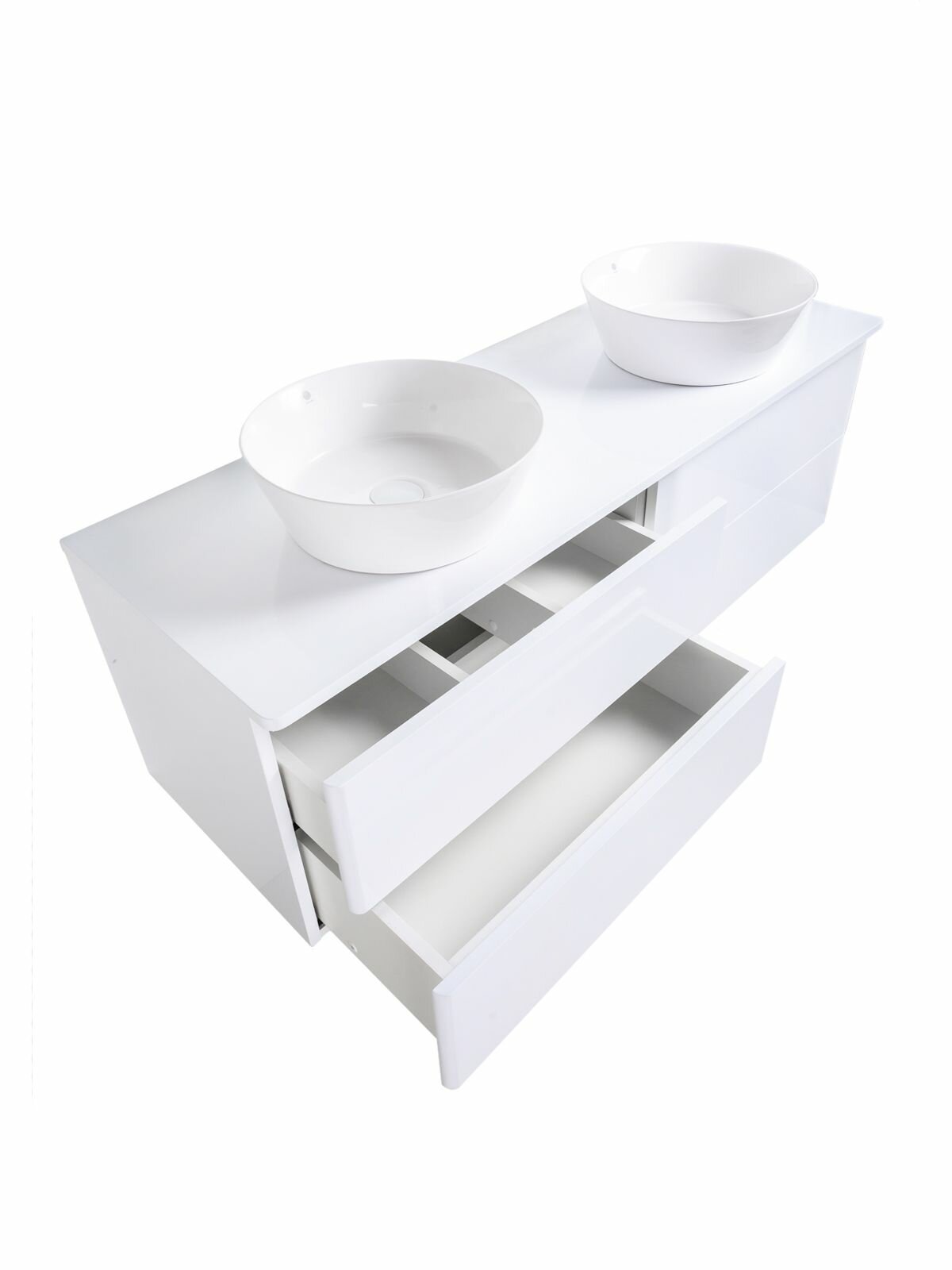 Корпус: МДФ четыре ящика закруглённые бока у фасадов механизмы полного выдвижения push-to-open Boyard пленка ПВХ цвет глянец.
