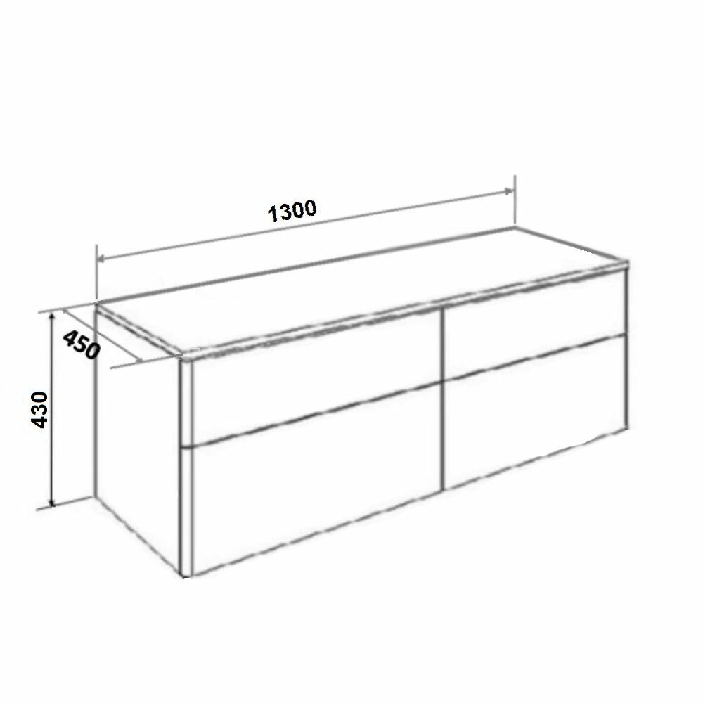 - Размеры тумбы (ШхВхГ): 130x43x45 см.