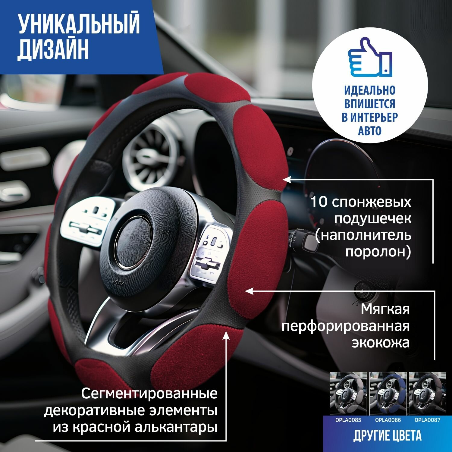 - Для надежной фиксации на руле оплетка имеет резиновый обод.