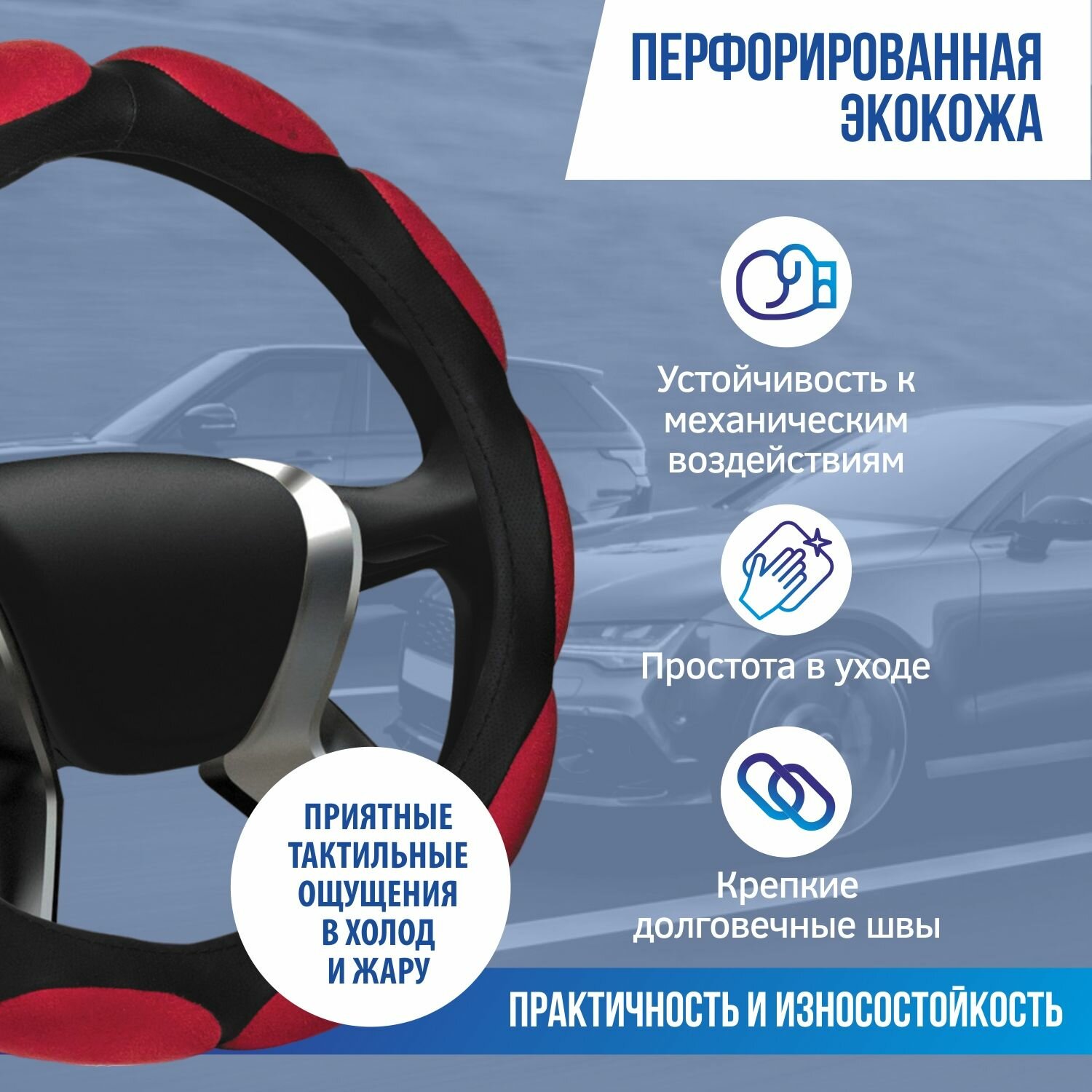 - Чехол легко фиксируется, плотно облегчает рулевое колесо, не скользит в процессе эксплуатации.
