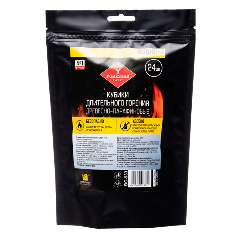 **Кубики для розжига Forester** предназначены для розжига дров, углей. Основа состава — древесина и парафин. Безопасны в использовании, не вспыхивают при поджиге. Один кубик горит не менее 3 минут.