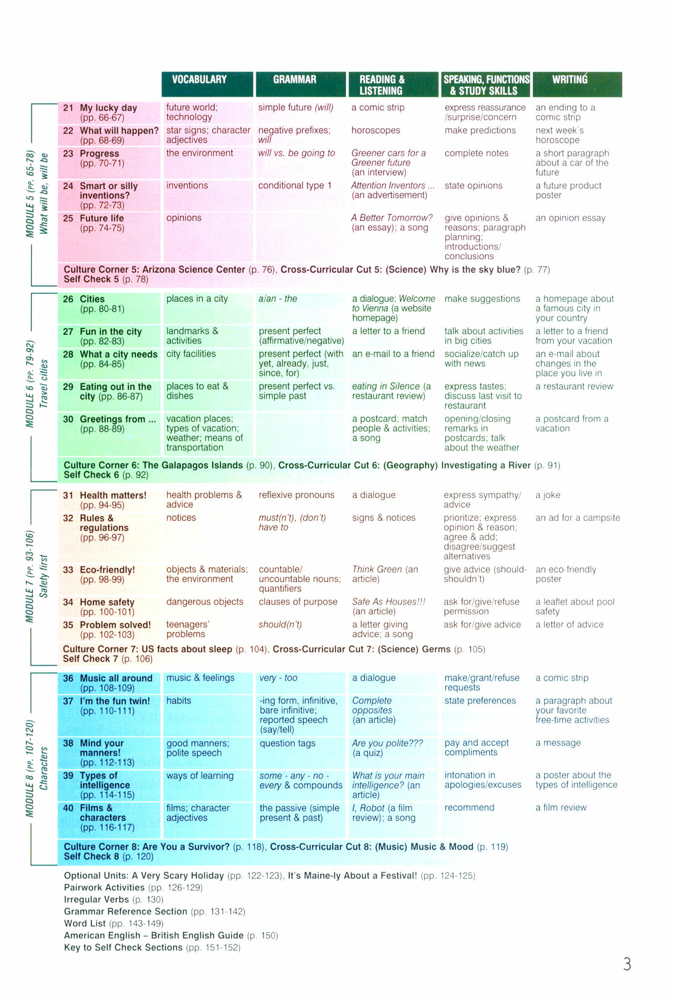 exploring grammar sections covering grammatical areas appropriate for each level plus a Grammar Reference Section