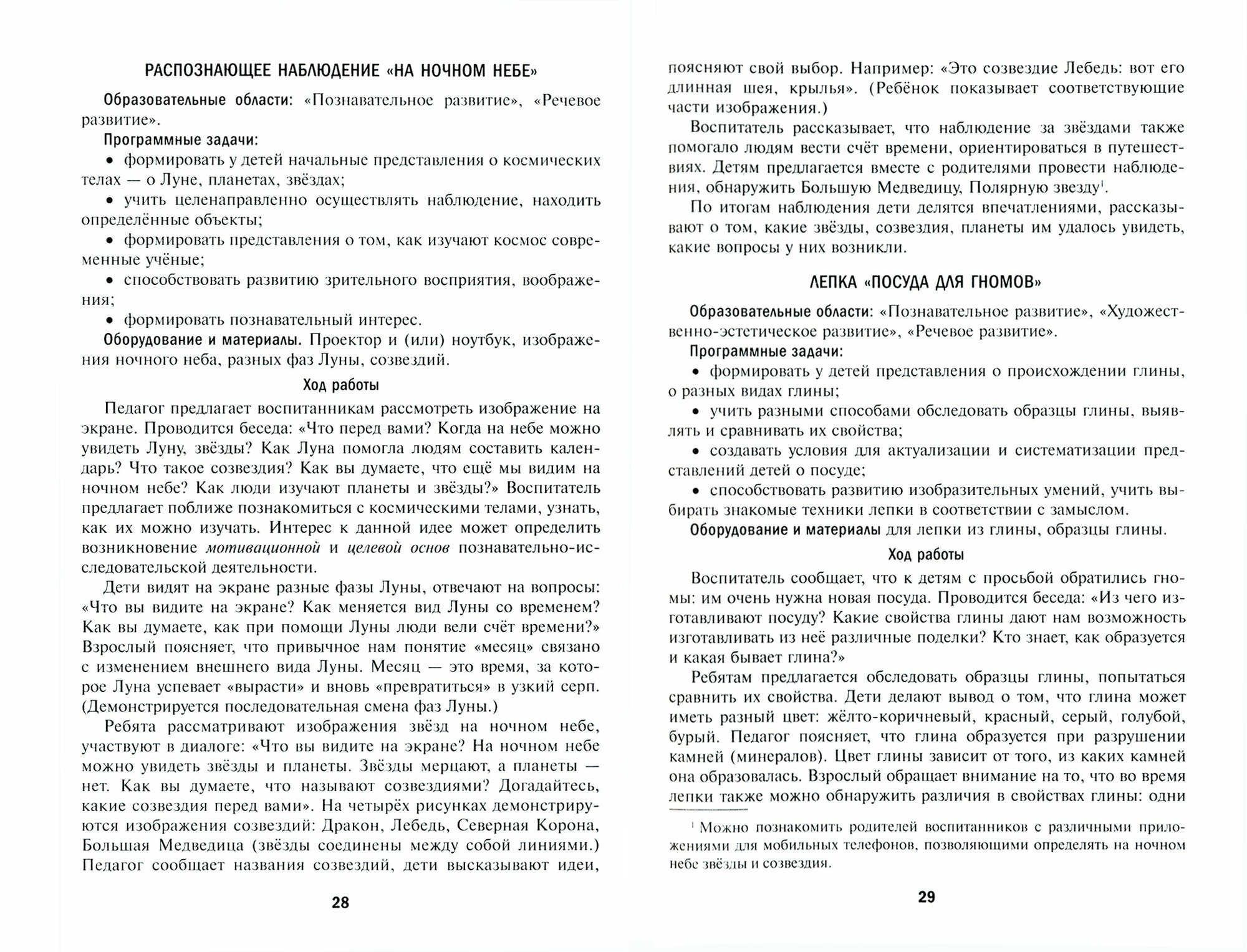 Книга содержит конспекты дидактических игр, образовательных ситуаций, наблюдений, экскурсий, целевых прогулок, игр-путешествий, экспериментов, творческих мастерских, детских лабораторий, творческих гостиных, интерактивных праздников, квестов. Методическое пособие адресовано педагогам, методистам и старшим воспитателям дошкольных образовательных организаций, студентам педагогических вузов, гувернёрам, специалистам, работающим с детьми 6-7 лет.