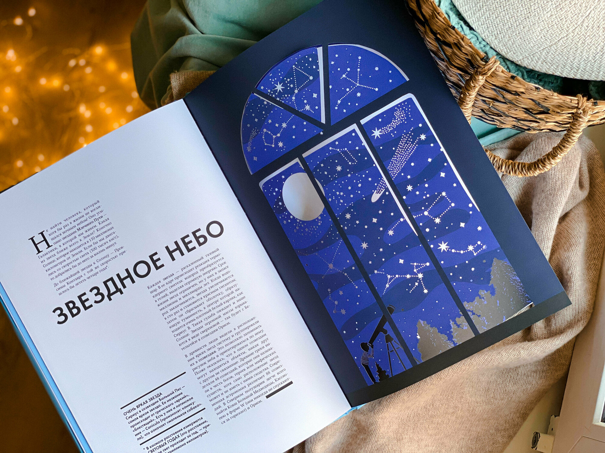 Небо — интерактивная книга с клапанами и резными иллюстрациями про атмосферу, космос и не только