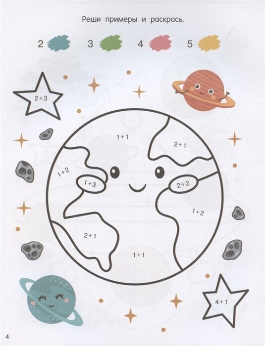 • Ребенок будет раскрашивать картинки с числами и примерами на сложение и вычитание — и получит навыки счета от 1 до 10.