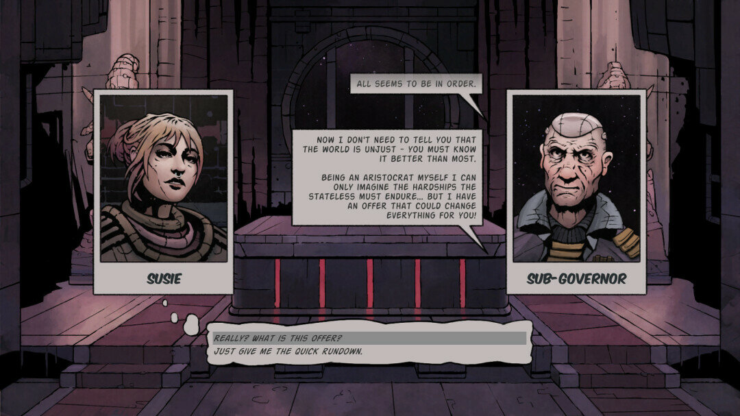 В далеком будущем человечество рассеялось по просторам галактики, а общество оказалось расколото на два класса. Вы – нищий изгой, вынужденный перебиваться тем, что находите на заброшенных космических станциях и кораблях пришельцев, но у вас есть мечта: стать полноправным гражданином и поселиться на какой-нибудь пригодной для обитания планете, где воздух, вода и пища – натуральные, а не синтезированные. Легендарный звездолет-реликт, затерявшийся где-то в секторе Deep sky, – ваш шанс обрести статус гражданина и получить путевку в райскую жизнь.Во главе отряда численностью до трех наемников вам предстоит исследовать заброшенные корабли. В ходе вылазок вам будут встречаться миролюбивые жители и торговцы, но куда чаще – различные враги. Вы будете сражаться с ними в тактических пошаговых битвах, используя случайно выпадающие карты с боевыми приемами, зарабатывать опыт для себя и своей команды, обирать трупы и возвращаться на базу за припасами. На базе можно залатать раны и повысить уровень мастерства наемников, улучшить снаряжение, набрать и вооружить новых бойцов, а также восполнить запас энергии, необходимой для поддержания систем жизнеобеспечения на задании.Ключевые Особенности:Новый подход к пошаговым боям с использованием карт.Качественное оформление в стилистике научно-фантастического комикса.Бесконечные варианты кастомизации персонажей и отрядов.Разнообразие способов прохождения благодаря процедурной генерации уровней.Захватывающая история о выживании человечества в антиутопической вселенной.Два игровых режима: «Повествование» и «Арена».© 2018 1C Company. Developed by Snowhound Games. All rights reserved.