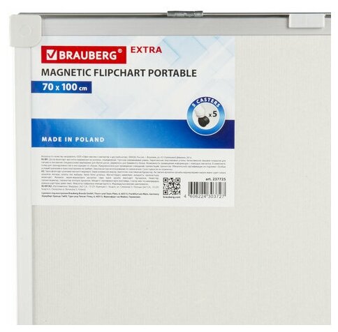Доска-флипчарт Brauberg Доска-флипчарт магнитно-маркерная передвижная Extra 100х70 см (размер: 70x100см)
