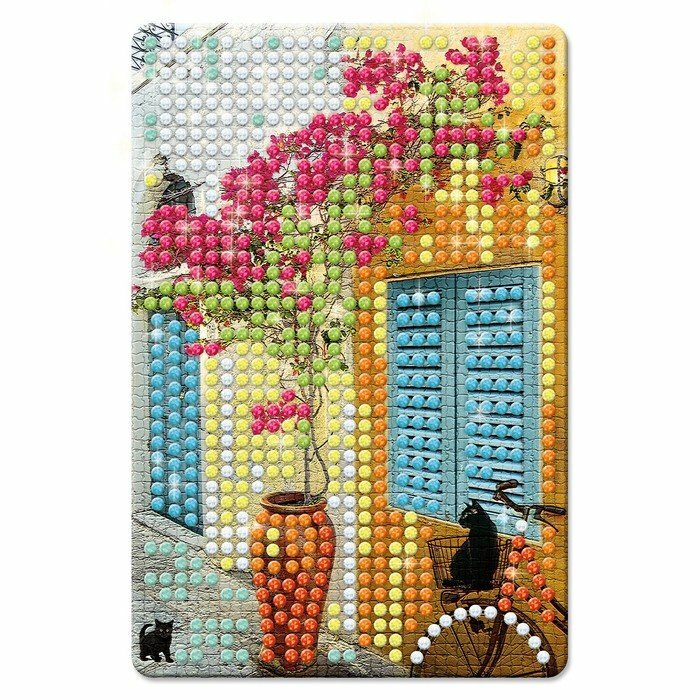 Приглашаем Вас совершить блестящее путешествие в мир алмазной мозаики. Сделать картинку "Солнечный город" очень просто. Необходимо снять защитный слой с клеевой основы, и с помощью карандаша - стилуса приклеить стразы по номеру и цвету. Готовую картинку можно поставить на мольберт, который входит в набор. Блестящий результат восхищает всех! В наборе: картинка с клеевой основой 10х15см, набор цветных стразов, стилус-карандаш, тарелочка, мольберт.