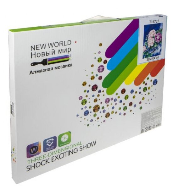 Комплектность: холст с подрамником, мозаика (9 упак.), тарелочка, инструмент для крепления мозаики, галерта, схема.