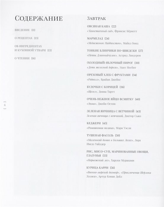 Хотите позавтракать тонкими блинчиками по-шведски, которые так ловко готовит Пеппи Длинныйчулок? Или предпочтете что-то экзотическое, например, японский завтрак героя Харуки Мураками — рис, мисо-суп, маринованные овощи и вкуснейшую глазунью? На обед можно приготовить спагетти с фрикадельками из «Крестного отца» или курицу карри, фирменное блюдо мисс Хадсон, квартирной хозяйки Шерлока Холмса. К чаю — знаменитые мадленки Пруста, тарталетки Червонной Королевы или пирог с тмином из «Хоббита». А как было бы здорово поужинать как Облонский и Левин в «Анне Карениной»! Джейн Остин и Льюис Кэрролл, Сэлинджер, Маркес и Теккерей, Джойс и Диккенс, Туве Янссон и Алан Милн — знаменитые писатели дразнят нас аппетитными описаниями еды. Теперь попробовать то, чем лакомятся их герои, будет намного проще: популярный английский блогер и профессиональный повар Кейт Янг выбрала 100 блюд из всемирно известных произведений художественной литературы и подобрала к ним аутентичные рецепты из доступных ингредиентов.