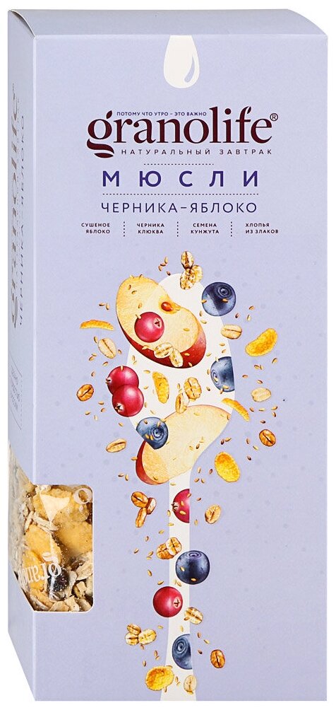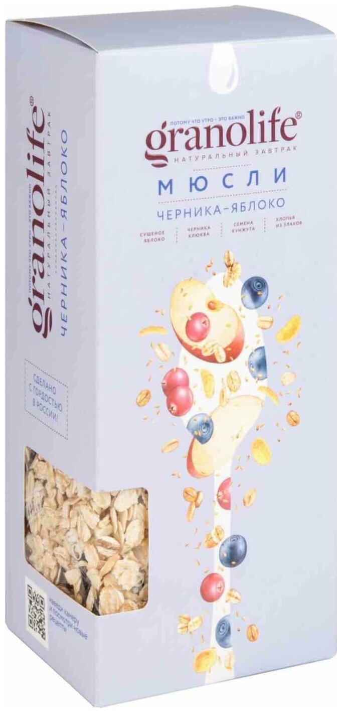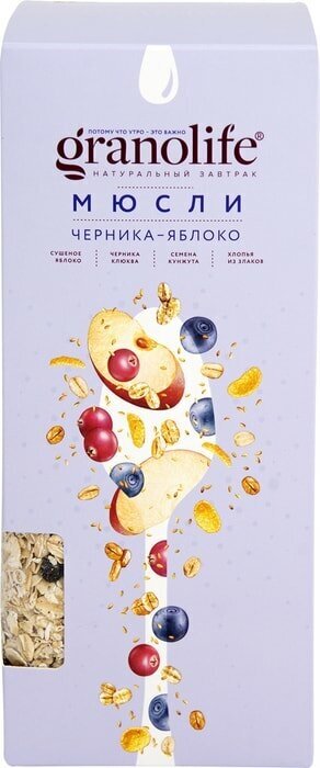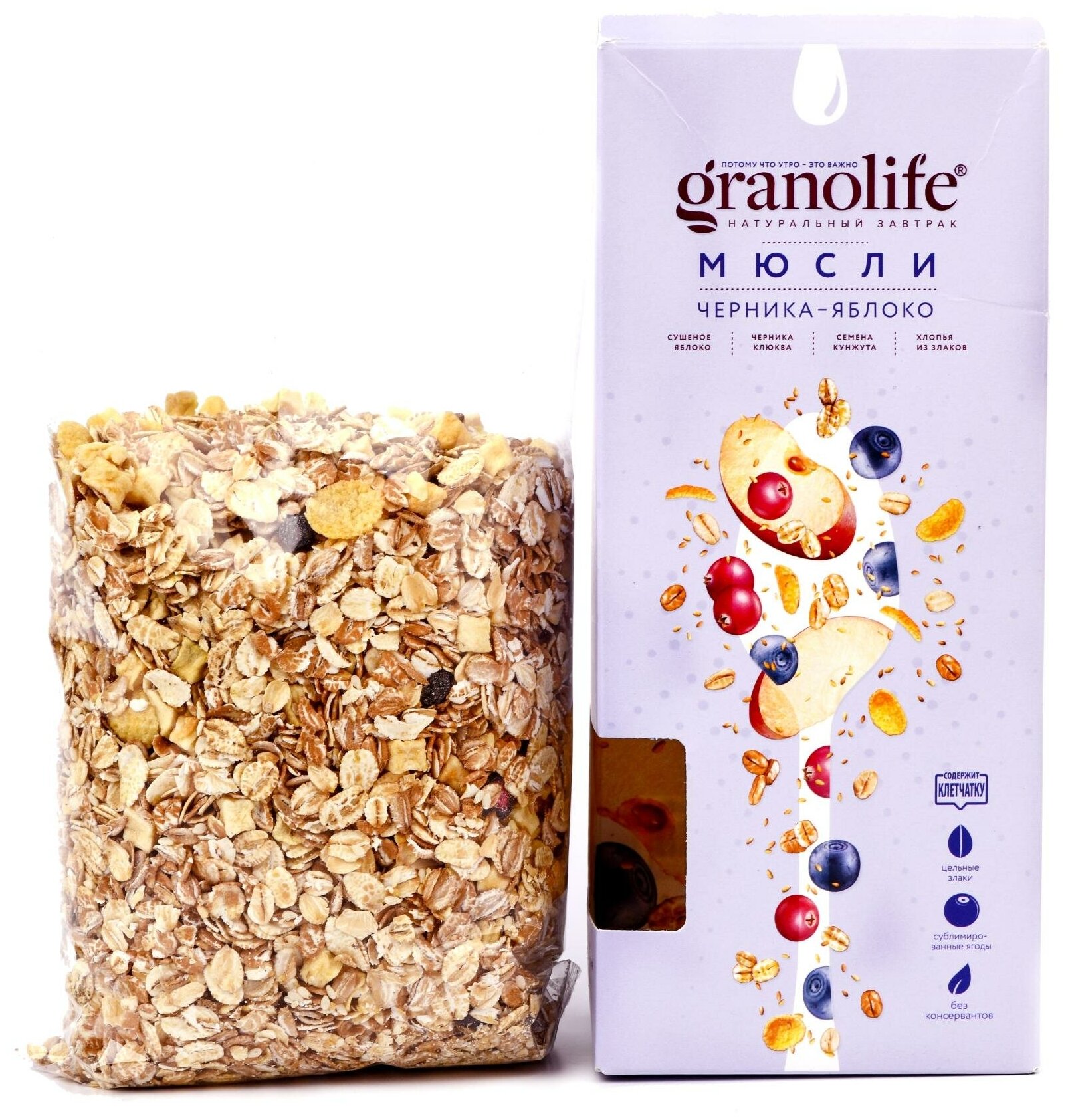 Сервис сравнения цен СкидкаГИД предлагает сравнить цены на товар «Мюсли Granolife Черника-яблоко 400г»