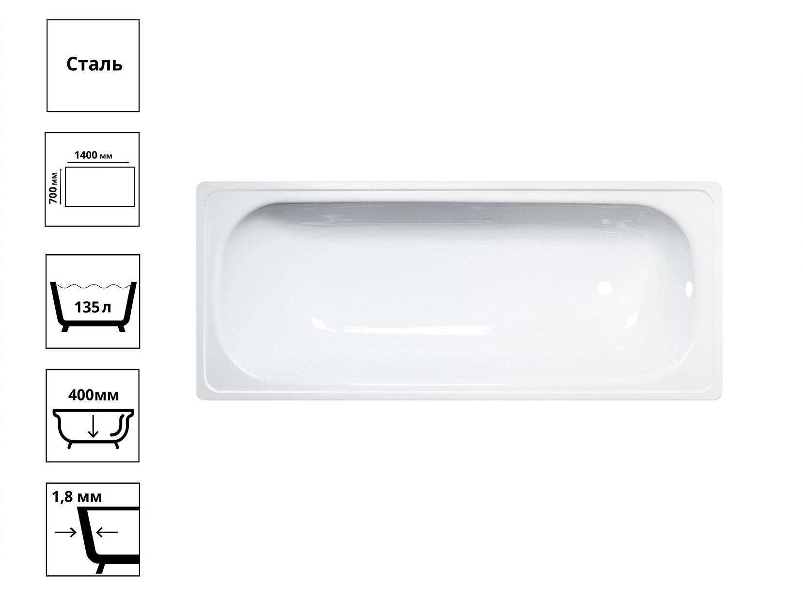 Сервис сравнения цен СкидкаГИД предлагает сравнить цены на товар «Стальная ванна ВИЗ Antica А-40001 140х70 без антискользящего покрытия»