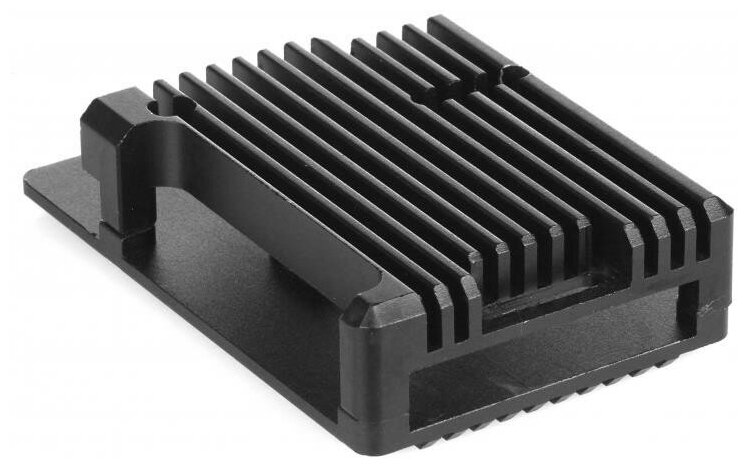 Корпус для одноплатного компьютера Raspberry Pi 3. Изготовлен из высококачественного сплава алюминия. Выполняет функции пассивной системы охлаждения (радиатора) для основных чипов платы. Корпус собирается из двух частей: плата устанавливается на нижней платформе, закрывается верхней крышкой, и вся конструкция крепится четырьмя винтами. После установки сохраняется доступ ко всем разъемам и интерфейсам (в том числе к интерфейсам для подключения камеры и дисплея). Не экранирует сигналы Wi-Fi и Bluetooth.