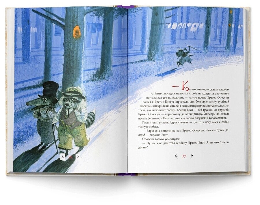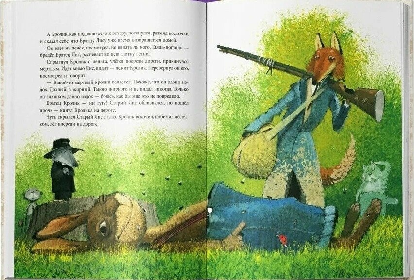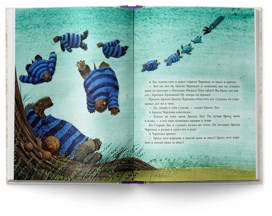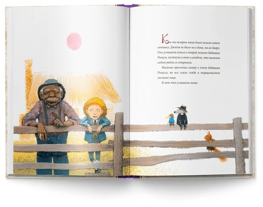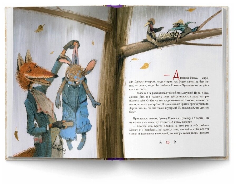 Хорошая книга, на плотной меловке, очень качественная бумага, матовая. Рисунки на такой бумаге яркие, красочные. Рисунки очень подходят к сказкам, жаль, что художника не хватило на остальные тексты. Всего меньше половины классических сказок вошли в сборник. В книге нет сказки про лошадь братца Кролика, нет про то, как лис посадил горох, про хвост братца Кролика, про соревнования Кролика и Черепахи и других интересных. Сказки здесь идут не по обычному порядку, поэтому могут быть несовпадения в повествовании. Но в целом рисунки хорошие, веселые. Персонажи немного своеобразные.