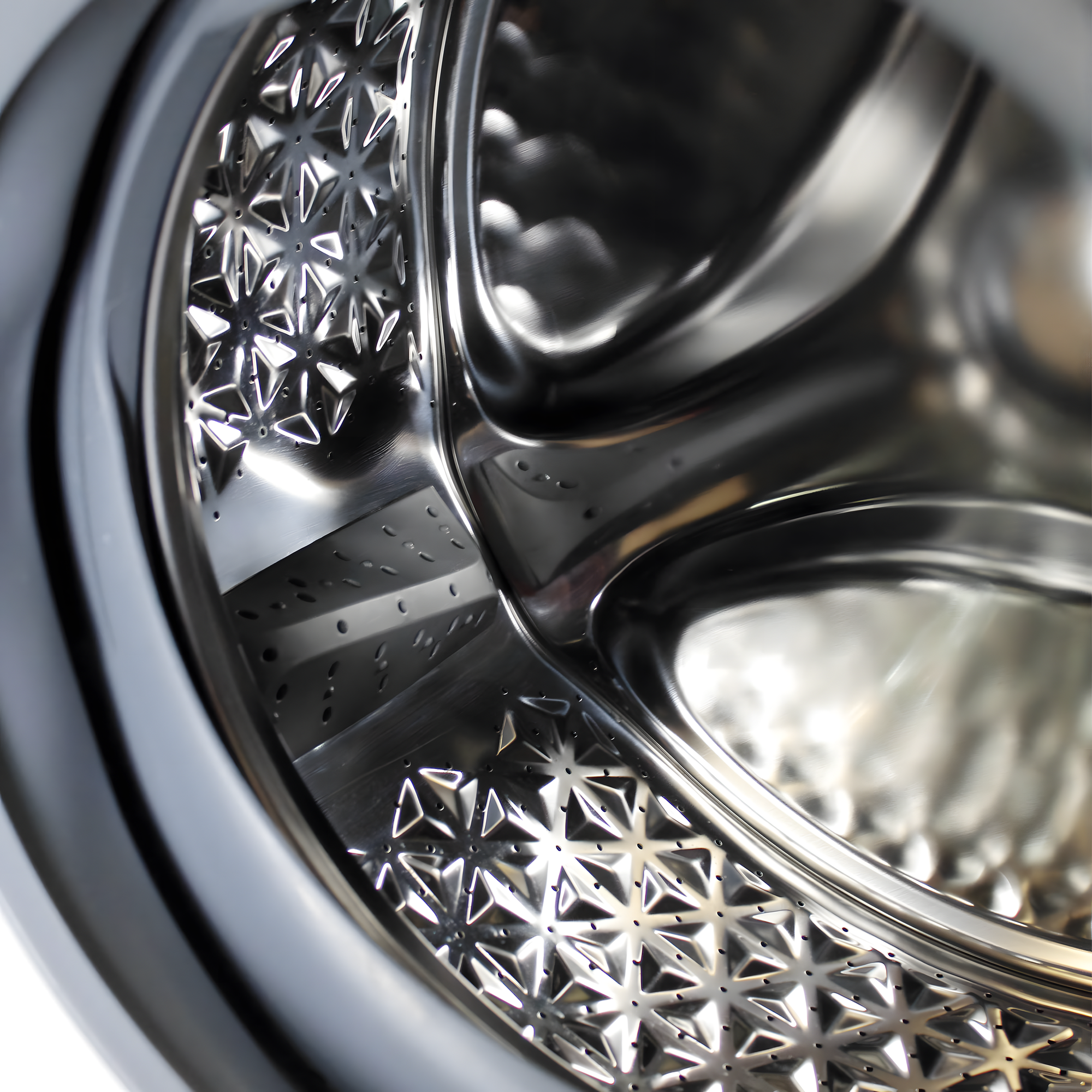 Доступна короткая программа от 15 до 60 минут. В верхней части лицевой панели размещены кнопки, регулятор и цифровой дисплей. Внизу расположен сливной люк. Устройство обладает функцией защиты от протечек. Дверца сделала из стекла и пластика, отличается диаметром 28,8 см. Тип загрузки — фронтальный. Габариты — 85х60х45 см. Вес — 55 кг.