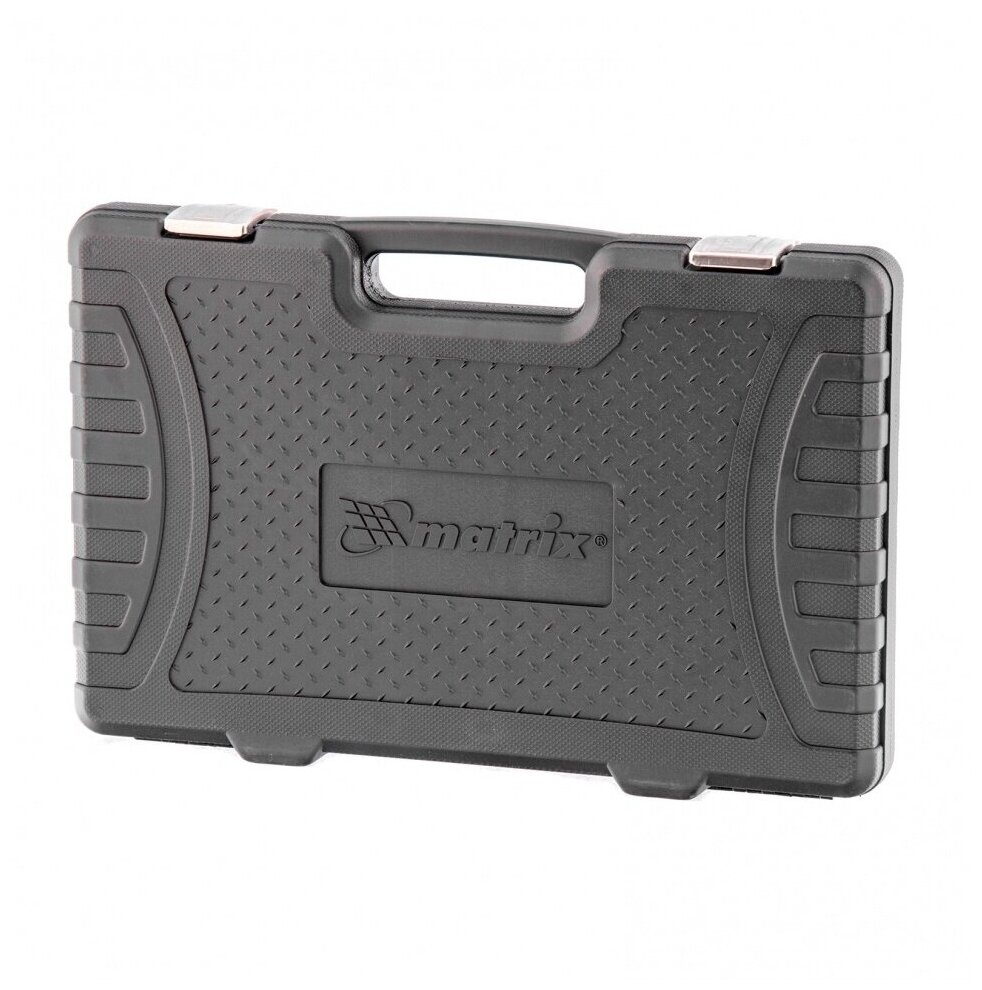 Набор из 13 комбинированных трещоточных шарнирных ключей Matrix 14798 пригодится мастерам и автолюбителям для фиксации и раскручивания крепежных элементов. Трещоточный механизм повышает скорость работы и легко справляется даже с закисшим крепежом. ПреимуществаПрочность и долговечность — ключи из высококачественной стали 40CrV, с храповым механизмом твердостью 58 HRC, выдерживают механические нагрузки. Устойчивость к воздействию влаги — хромоникелевое покрытие предотвращает образование коррозии. Аккуратная работа — накидные части с 12-гранным профилем плотно охватывают головку крепежа, что снижает риск повреждения ее граней. Удобная работа в труднодоступных местах — храповый механизм на 72 зуба обеспечивает плавное вращение (шаг трещотки составляет 5°), а шарнир позволяет поворачивать рабочую часть под углом. Быстрый поиск нужного инструмента — в наборе 13 ключей на 8, 10, 12, 13, 14, 17, 19, 20, 22, 24, 27, 30, 32 мм с нанесенной на корпус маркировкой типоразмера. Продуманное хранение и транспортировка — набор упакован в удобный пластиковый кейс.