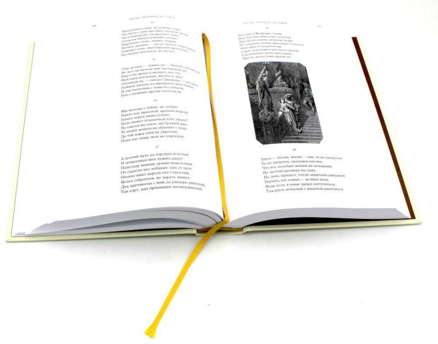 Это издание - безусловно, событие! Впервые полный стихотворный перевод размером подлинника (до того выходил лишь верлибром). Перевод немного почитал, нравится. О точности и прочих бестелесных материях пусть рассуждают специалисты. Я лишь сравнивал с предыдущим переводом. Само издание добротное. Белый плотный офсет, ляссе, тираж 200 экз. Качество печати могло бы быть получше. Так что, хоть комплект иллюстраций Гюстава Доре и полный, но я бы не стал брать именно из-за них. Главное, шикарный и увлекательнейший рыцарский роман.
