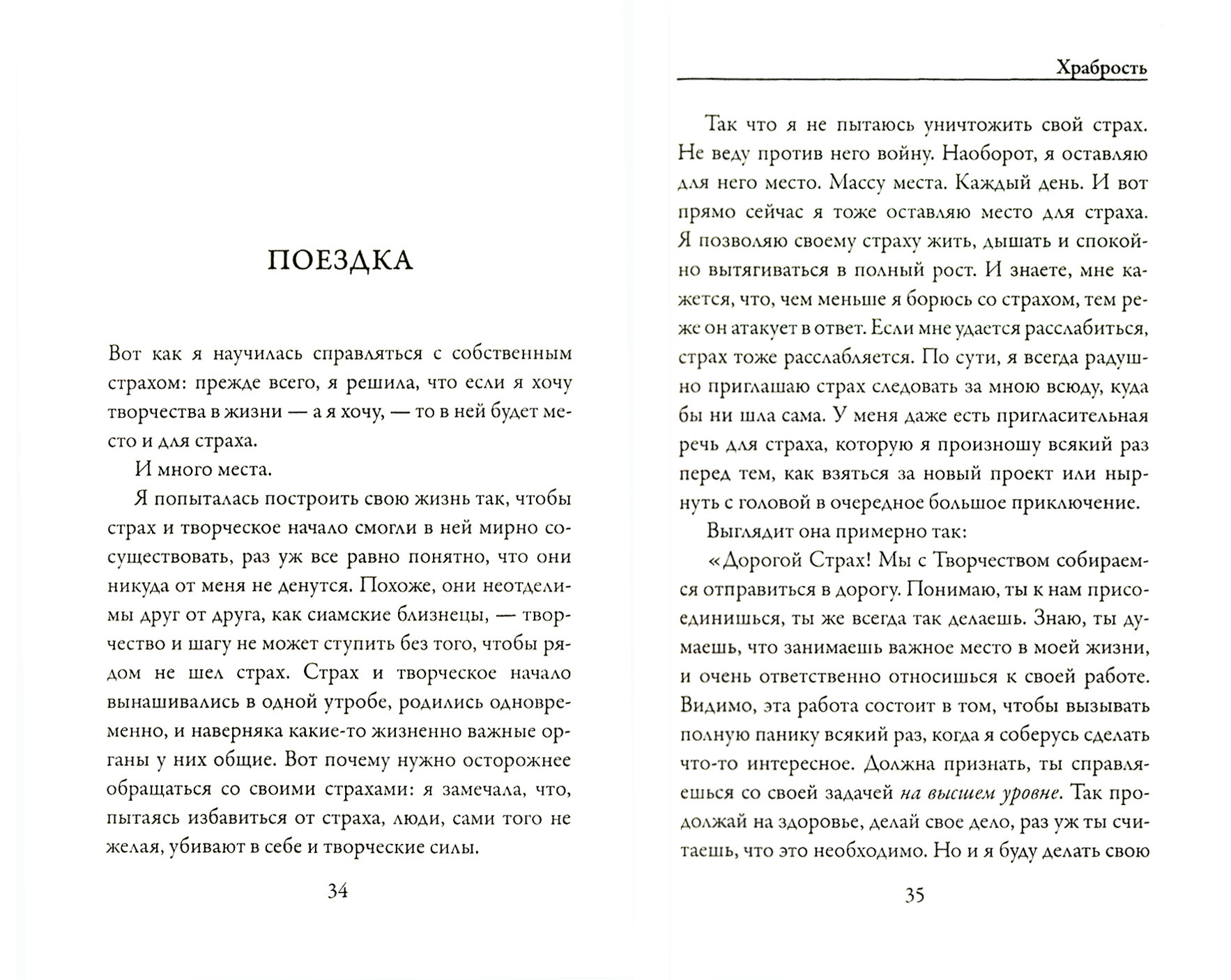 Если вы всерьёз подались в писательство, особенно если вы в начале пути, особенно если вам не хватает поддержки, то книга Элизабет Гилберт станет эдаким подбадривающим собеседником. Опираясь на опыт своего становления как писателя, автор показывает, как боролась с писательскими страхами, как пересмотрела отношение к вдохновению, как искала идеи и, что иногда важнее, как их отпускала. Книга, с одной стороны, не обещает лёгких дорог, а с другой — сбивает с творческого процесса ореол мученичества. Вдохновляющее чтение.