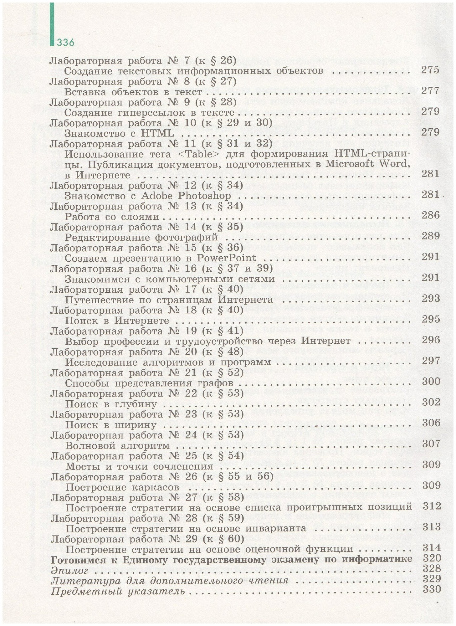 предназначенный как для базового, так и для углубленного уровней обучения. В курсе основное внимание на базовом уровне преподавания информатики уделяется расширенному освоению информационных технологий для применения их к решению разнообразных жизненных задач. Это делает предлагаемый курс привлекательным для всех учащихся, независимо от того, выбрали они гуманитарное или естественно-научное направление своего обучения. Материал, предназначенный для изучения на углубленном уровне, содержит более глубокое изложение основ теоретической информатики и нацелен на подготовку к ЕГЭ. В параграфах, относящихся к углубленному уровню, можно узнать о методах, которые позволяют повысить надежность и экономичность кодирования, идет расширение знаний в области структур данных, понятий о графе и стеке, методами исследования алгоритмов. Предстоит узнать о том, как моделируются задачи управления в терминах игры, что такое стратегия и эвристика. Именно в этих параграфах (их названия напечатаны зеленым цветом) информатика предстанет прежде всего как строгая научная дисциплина, в логике своей родственная математике (хотя самой математики в ней почти нет).