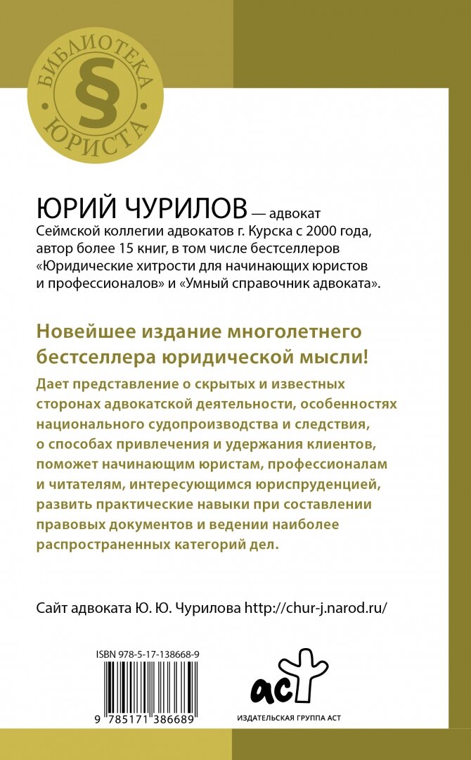 Самоучитель начинающего адвоката. 4-е издание дополненное и переработанное (Чурилов Юрий Юрьевич); ИЗДАТЕЛЬСТВО "АСТ", 2021