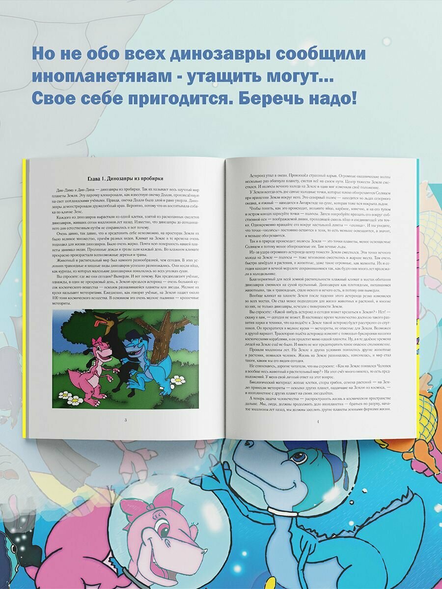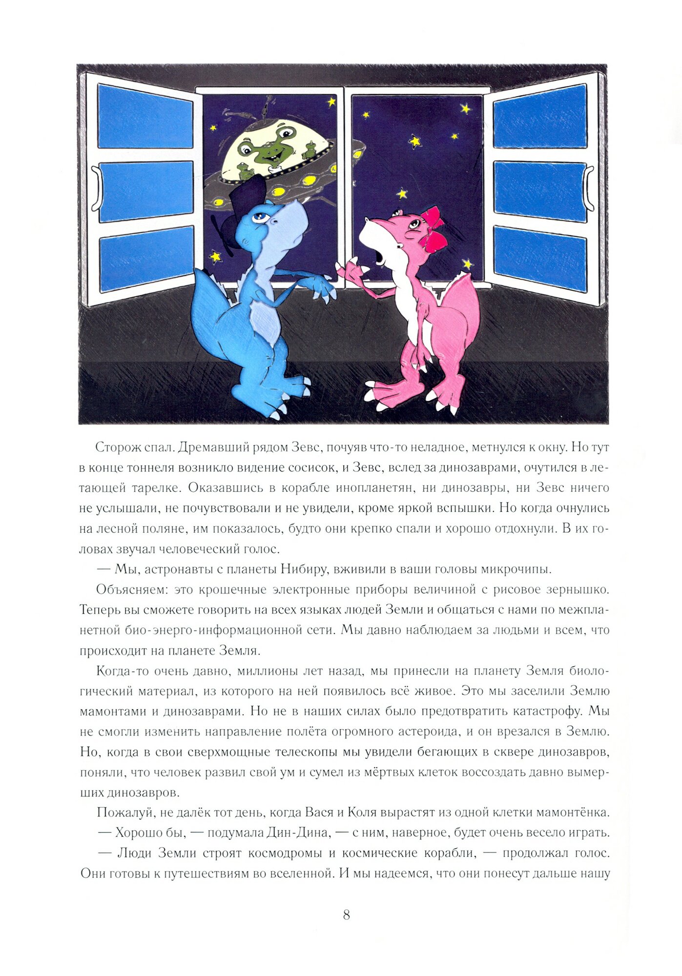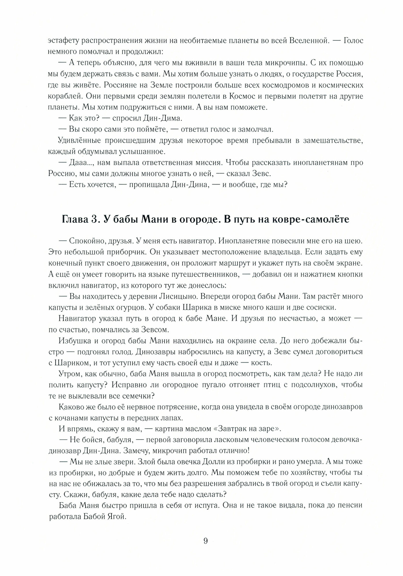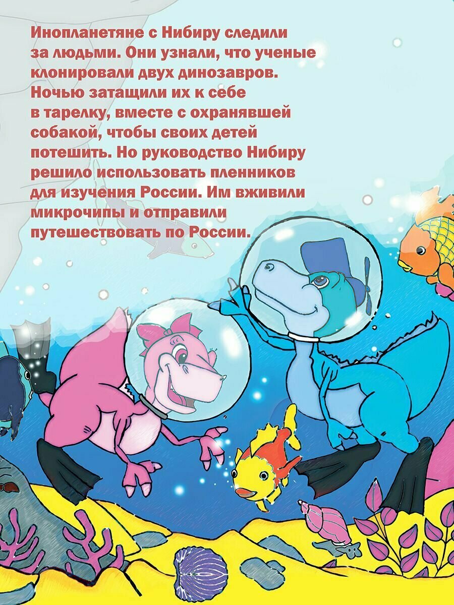 Инопланетяне с Нибиру следили за людьми. Они узнали, что ученые клонировали двух динозавров. Ночью затащили их к себе в тарелку, вместе с охранявшей собакой, чтобы своих детей потешить. Но руководство Нибиру решило использовать пленников для изучения России. Им вживили микрочипы и отправили путешествовать по России. Инопланетянам хотелось знать чем богата планета Земля? Авось и им что-нибудь пригодится. Динозавры и собака должны были докладывать обо всём, что увидят. Приключения начались с того, что все трое очнулись от внеземного контакта на огороде у бабы Мани, которая до пенсии работала Бабой Ягой. Бывшая Яга подарила им ковер-cамолет и скатерть-самобранку. Облетев всю Россию, путешественники убедились что чудес в России столько, что их всех не счесть. Но не обо всех динозавры сообщили инопланетянам – утащить могут… Свое себе пригодится. Беречь надо! Динозавры от рождения чувствовали себя землянами и уже заботились о благополучии планеты Земля.