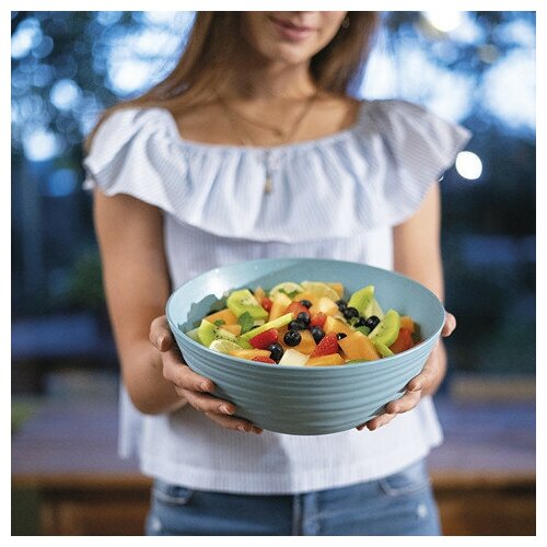 Миска Tierra диаметром подойдет для сервировки повседневного и праздничного стола. Посуда предназначена для подачи холодных закусок и салатов. Изделие разработано Pio Tito Toso по запатентованной технологии из перерабатываемого продукта. В качестве исходного сырья выступают пластиковые бутылки объемом 1,5 л. Дизайн посуды напоминает керамику, а реалистичности внешнему виду придают тщательно подобранные пастельные цвета и намеренно неровные круговые рисунки, создающие эффект ручной работы. Миска отлично гармонирует с другими предметами коллекции Tierra. Температурный режим при использовании 0-35 градусов. Можно мыть в посудомоечной машине на эко-режиме и температуре не более 55 градусов. Изделие не подходит для микроволновой печи. Объем миски 12 см – 348 мл Размер: 12,2 х 5,5 х 12,2 см Размер миски 18 см – 18 х 7,6 х 18 см Объем миски 25 см – 3,1 л Размер: 25 х 10,5 х 25 см Объем миски 30 см – 5 л Размер: 30 х 12,8 х 30 см Бренд: Guzzini (Италия) Материал: пластик