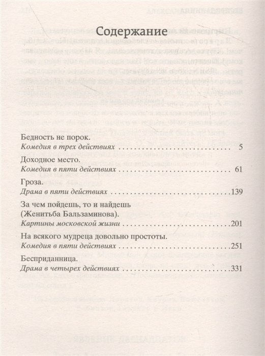 В настоящее издание вошли самые известные пьесы: «Гроза», «Бесприданница», «Доходное место» и другие.