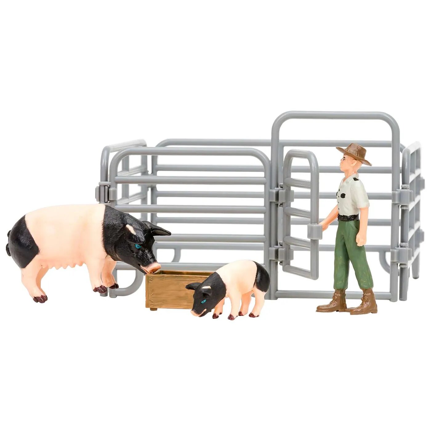 Фигурка Masai Mara 6 предметов (фермер 2 свиньи ограждение-загон инвентарь) Набор фигурок животных На ферме Свиньи (5 предметов)