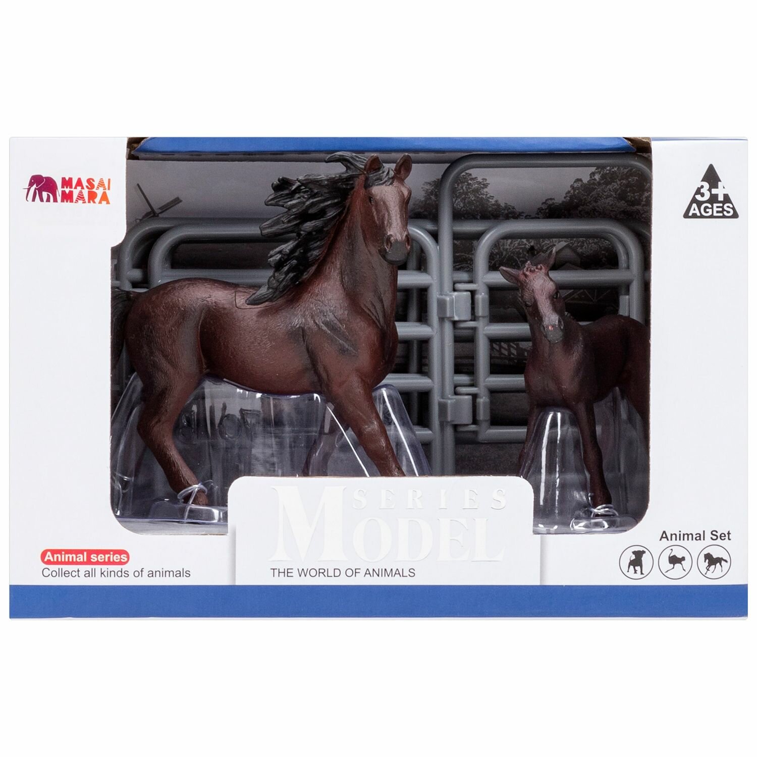 Фигурка Masai Mara Мир лошадей Фризская лошадь и жеребенок ограждение-загон Фигурки животных Мир лошадей Фризская лошадь и жеребенок (3 предмета)