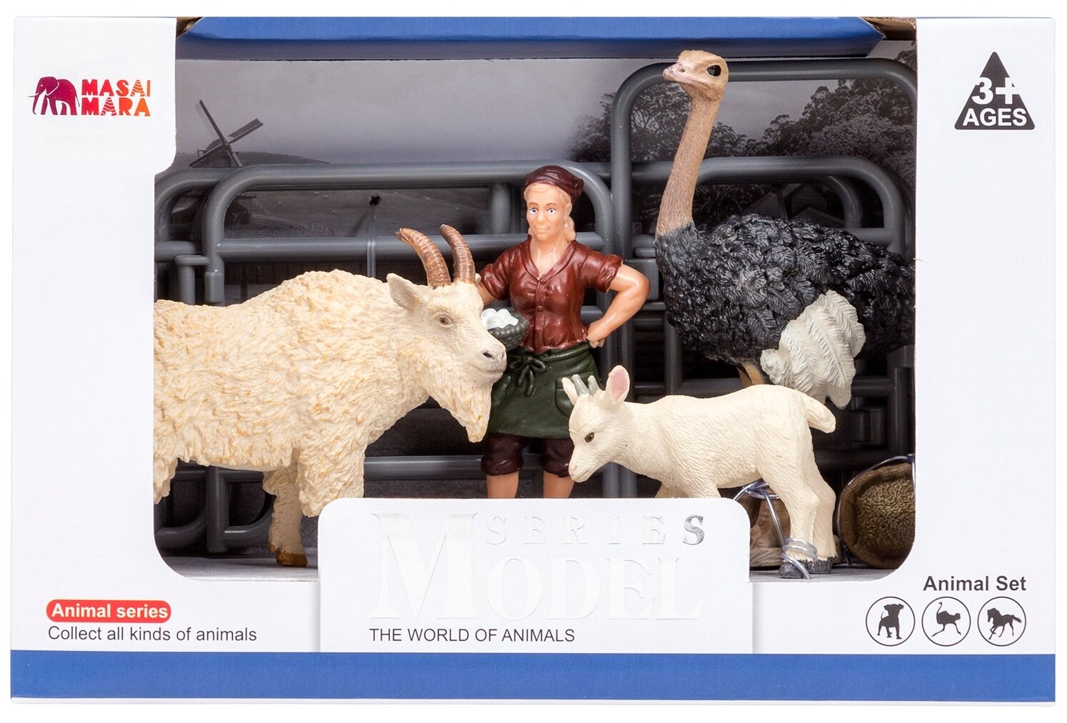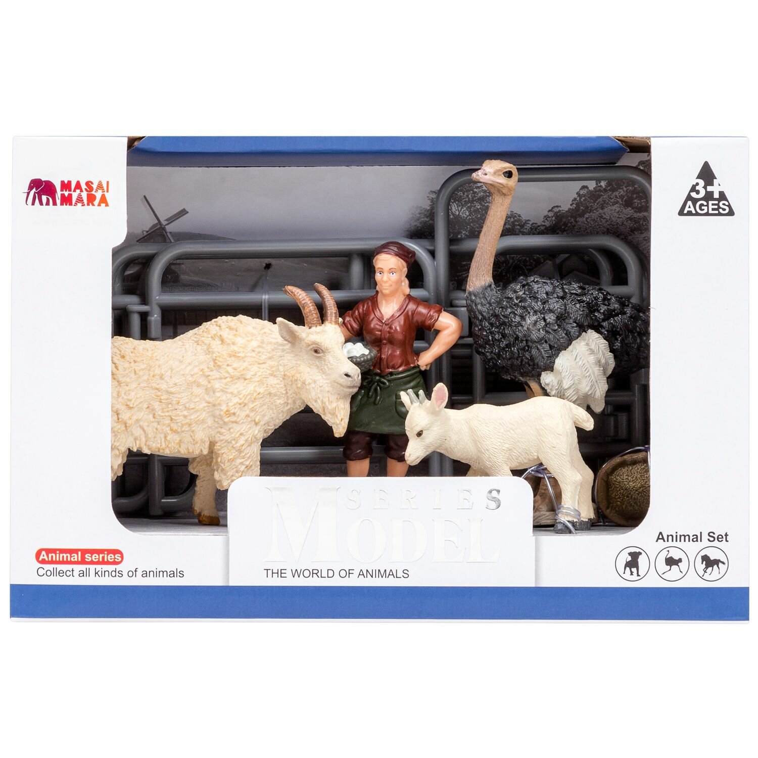 Фигурка Masai Mara 6 предметов (фермер 2 козлика страус ограждение-загон инвентарь) Игрушки фигурки На ферме (6 предметов) ММ205-009
