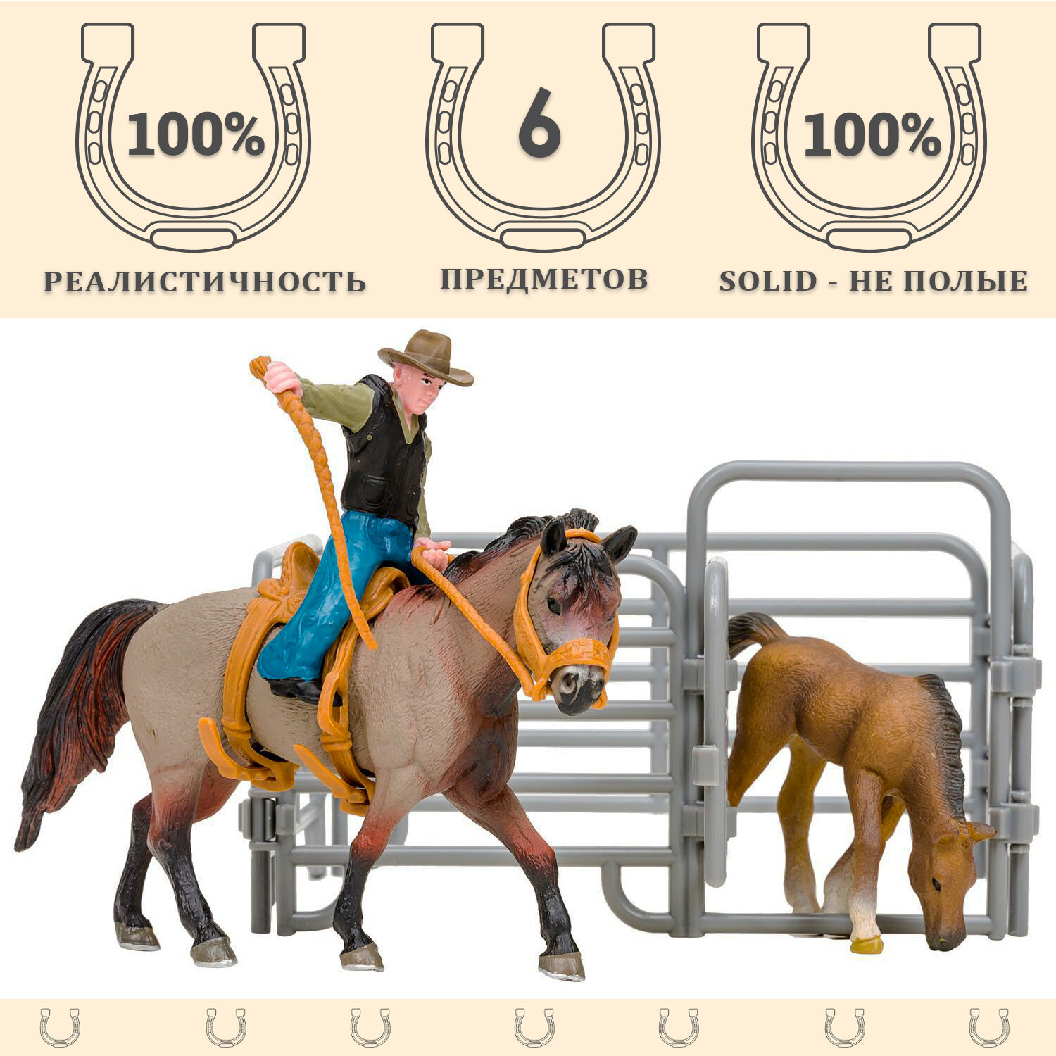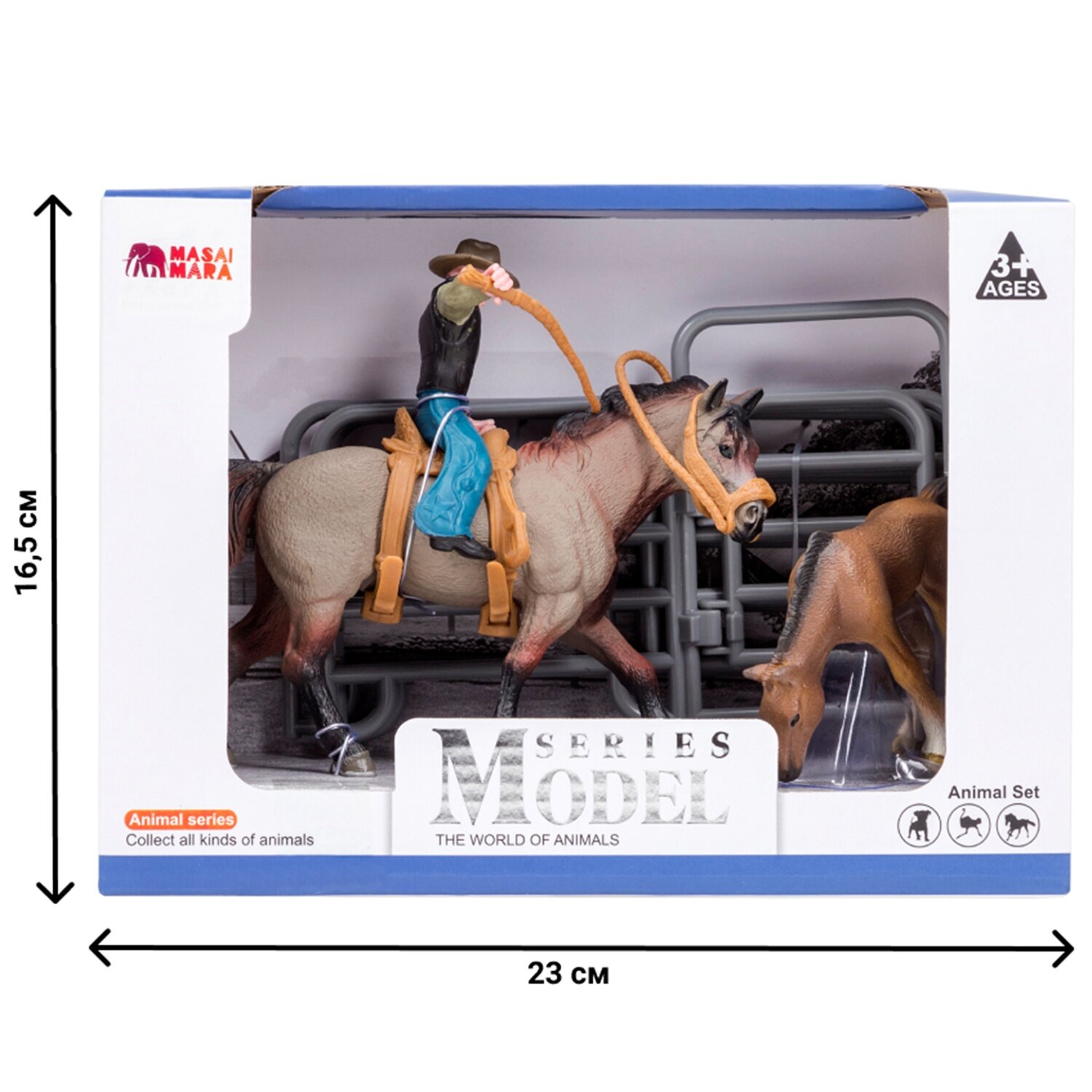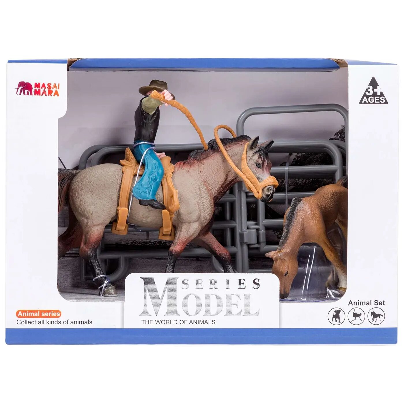 Фигурка Masai Mara 6 предметов (Американская лошадь и жеребенок наездник загон) Игрушки фигурки На ферме (6 предметов) ММ205-017